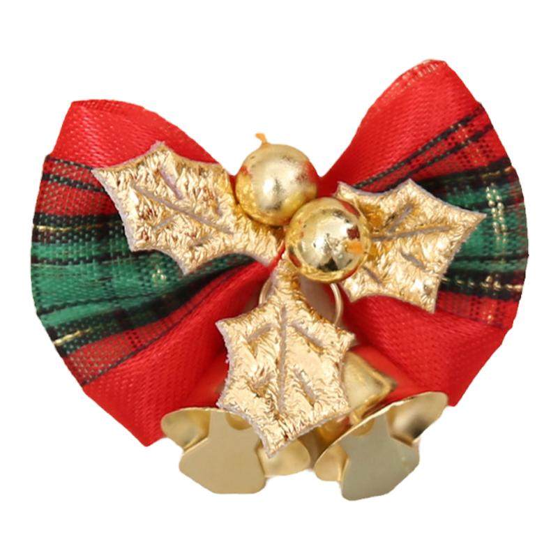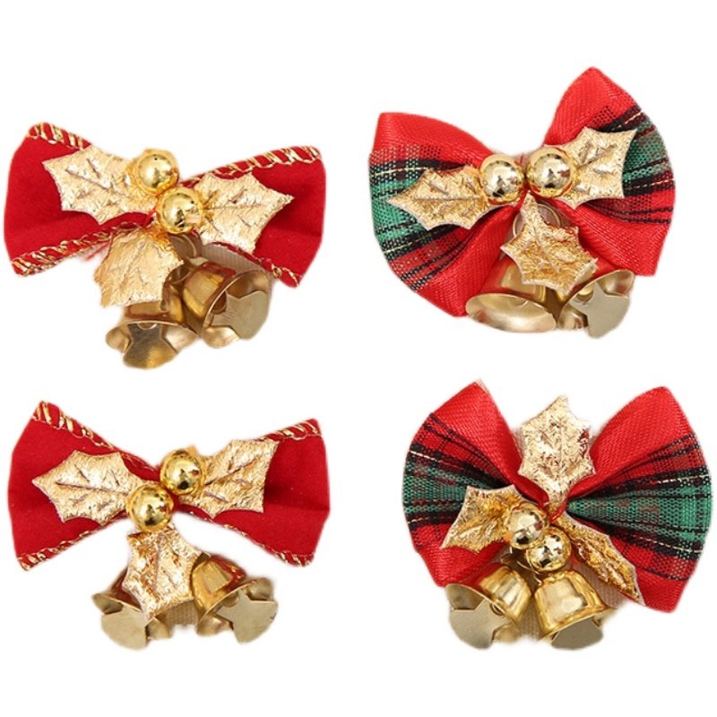 圣诞礼盒配饰装饰 蝴蝶结金色铃铛配件绿色格子 布植绒布花环礼品