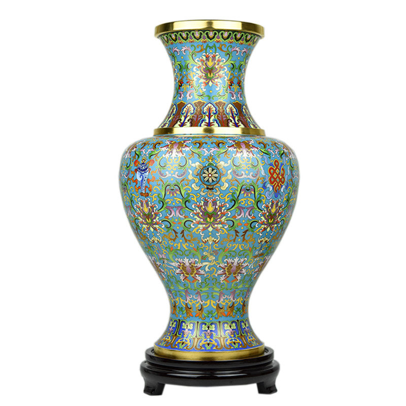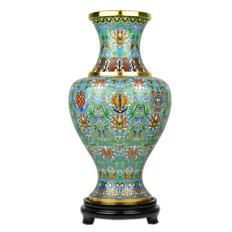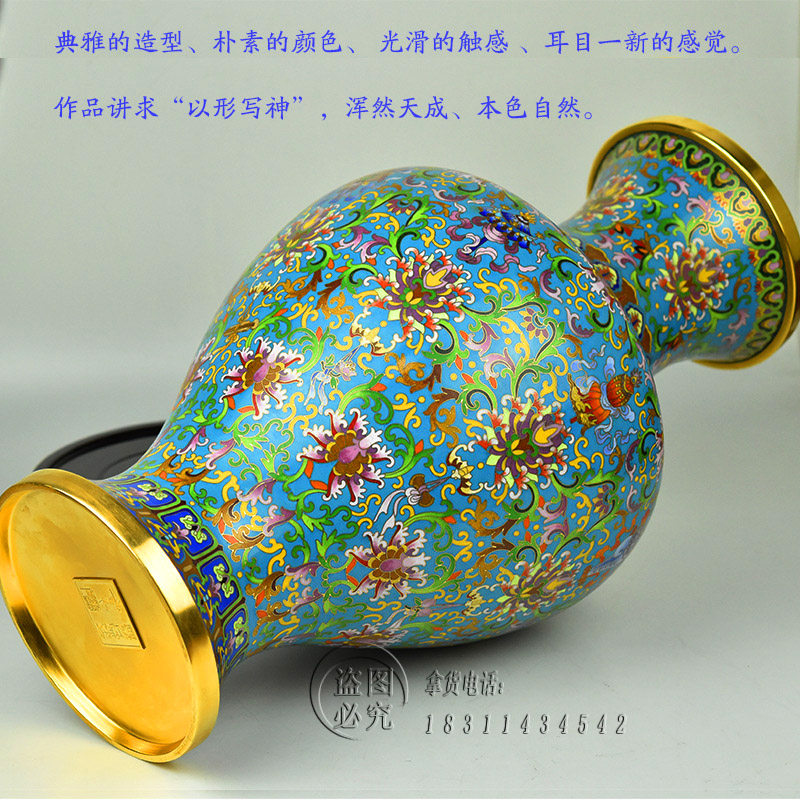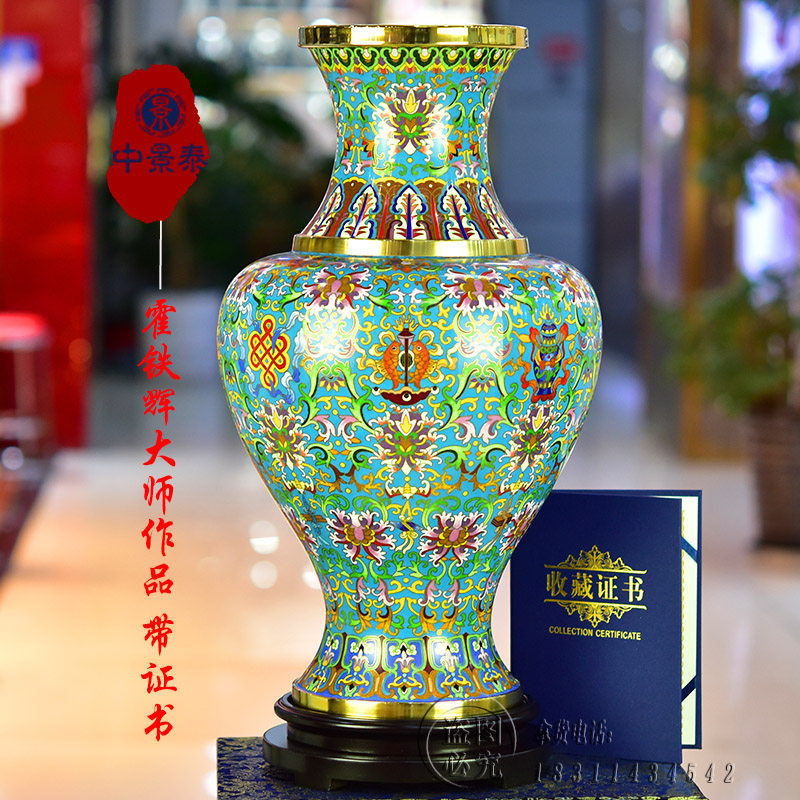 北京传统特色手工艺品霍铁辉带证书景泰蓝花瓶20寸吉祥八宝观音瓶