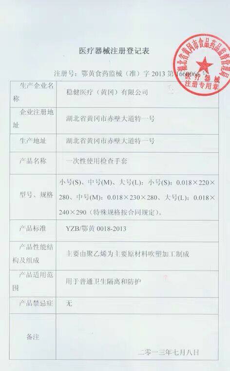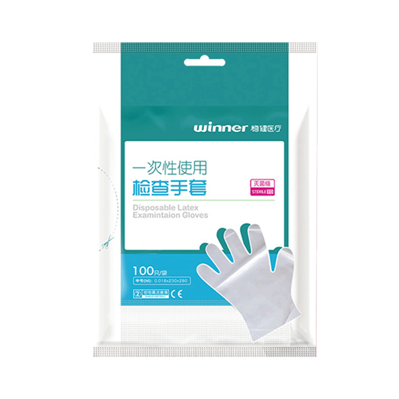 稳健医用pe手套一次性无菌防滑检查专用手套家用加厚薄膜透明手套