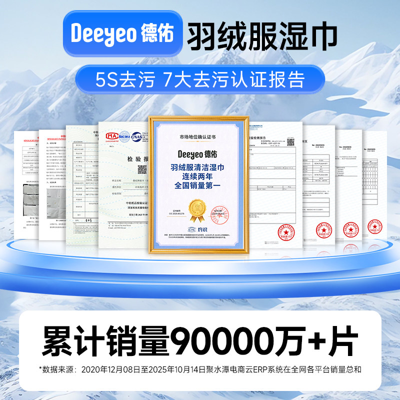 德佑羽绒服湿巾免水洗不伤衣强力清洁去污衣物去渍湿纸巾家用便携