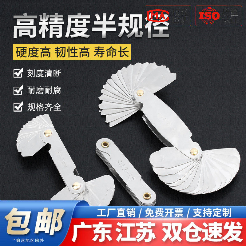 不锈钢全套高精度半径规R规样板圆角测量工具R角规规尺弧度圆弧尺