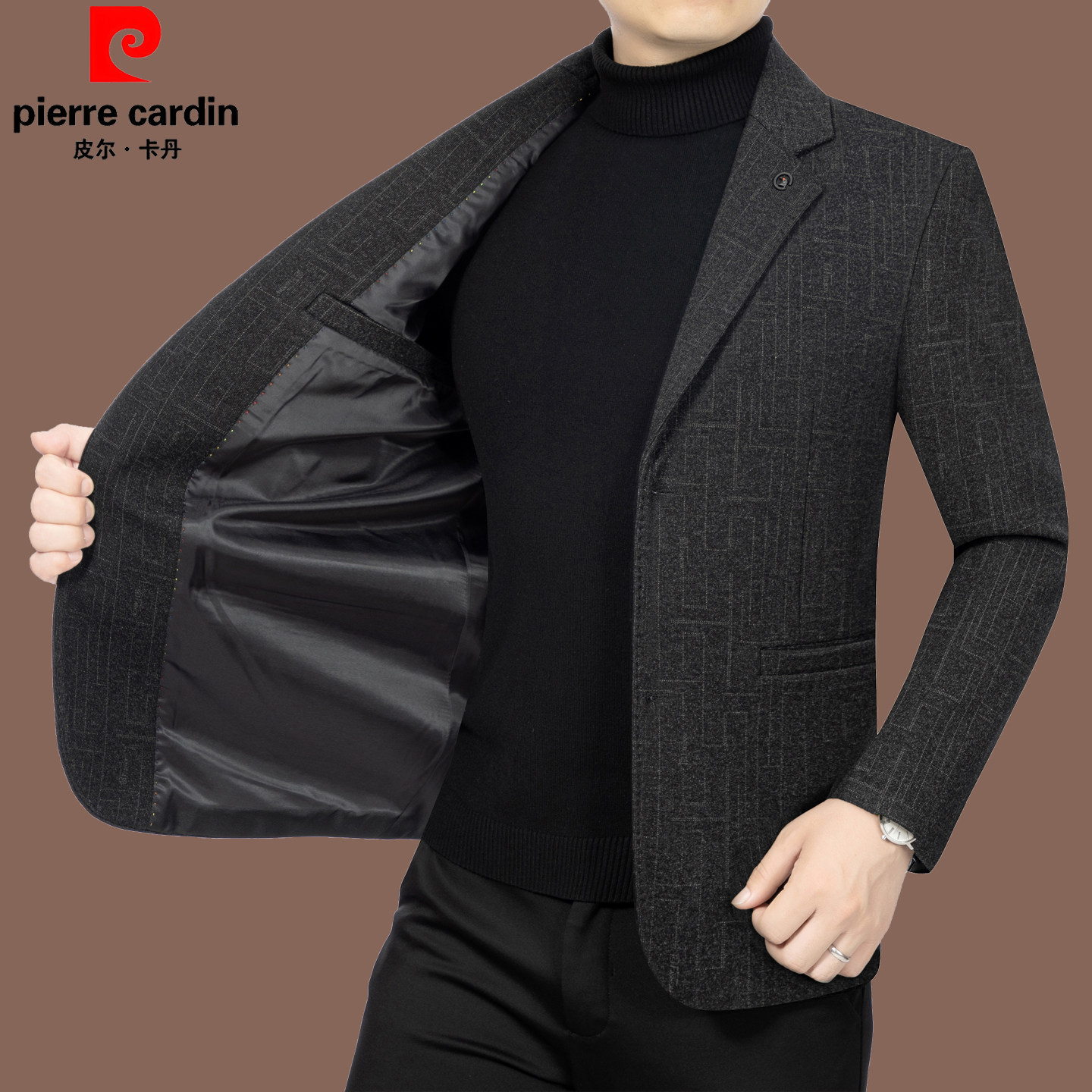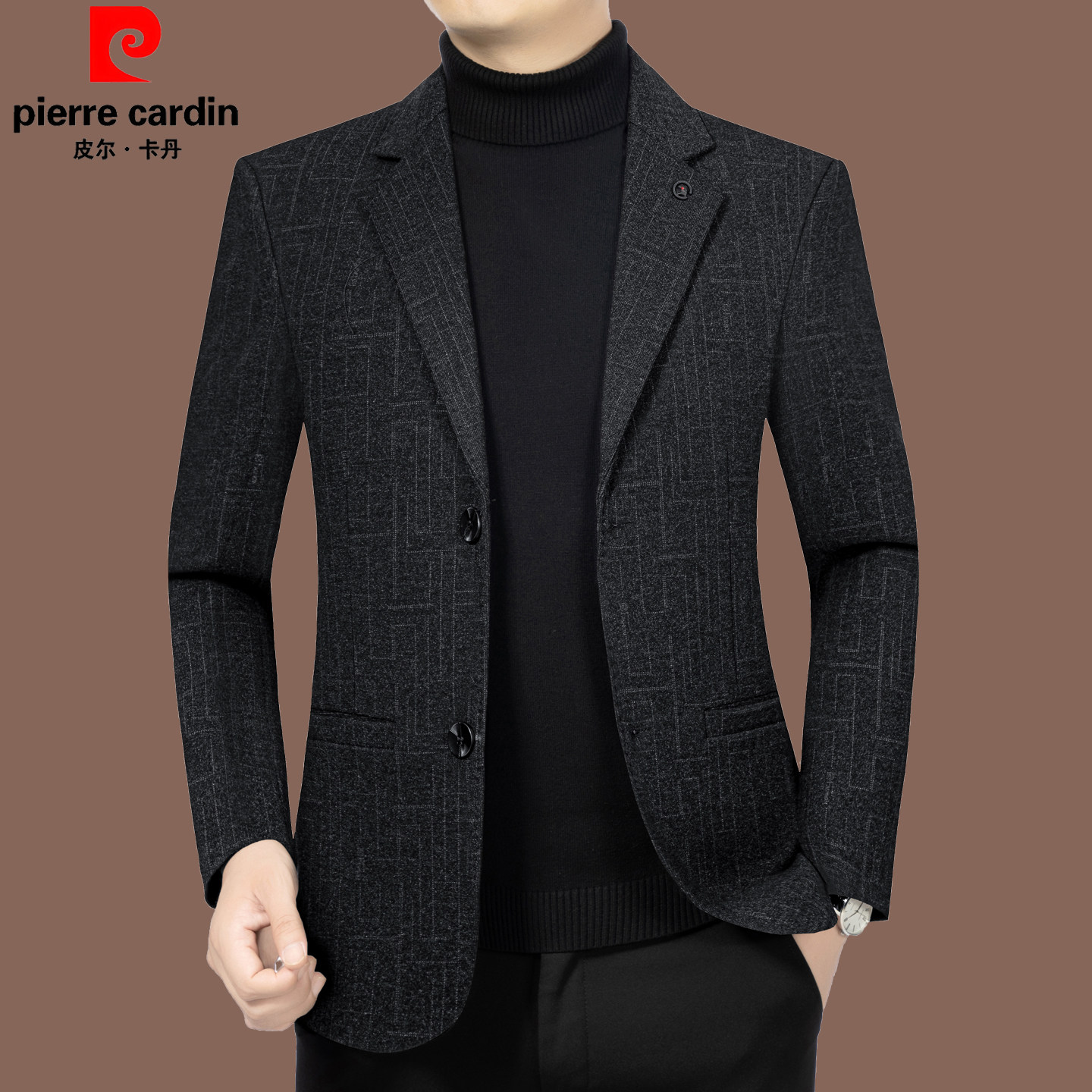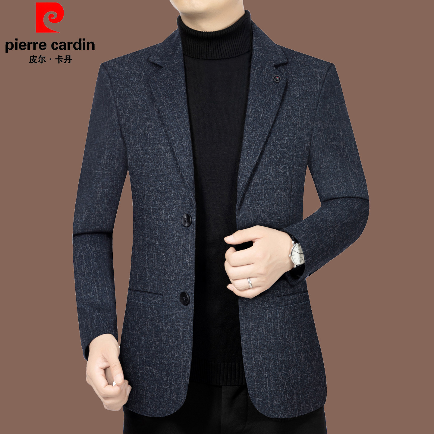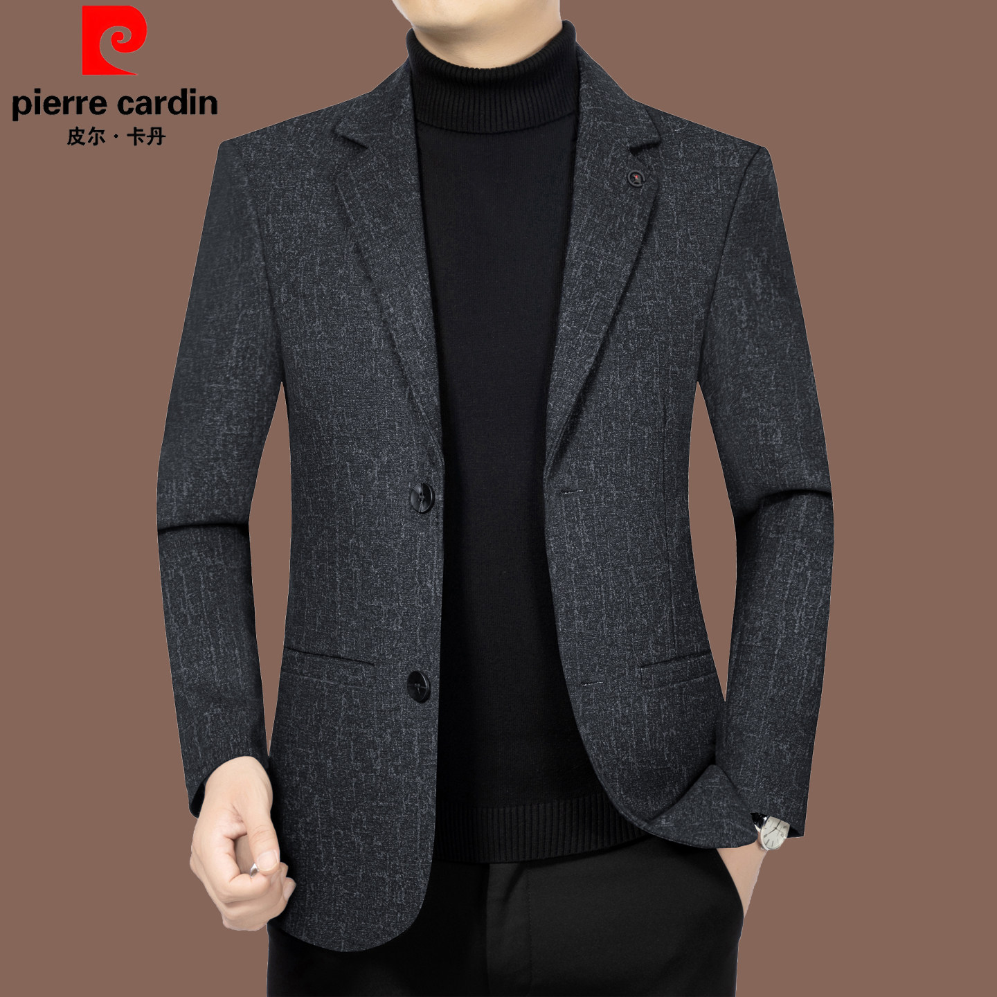 皮尔卡丹春秋新款中年男西装上衣修身商务休闲高端爸爸装西服外套