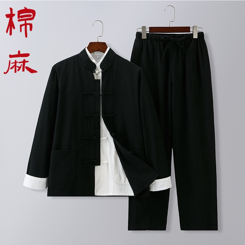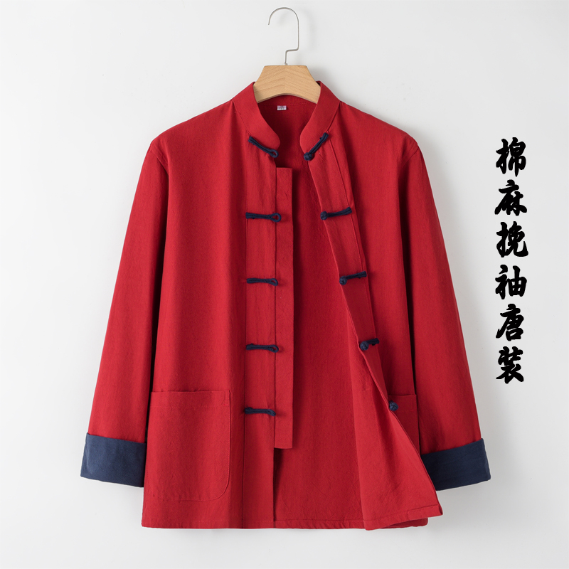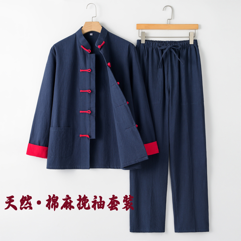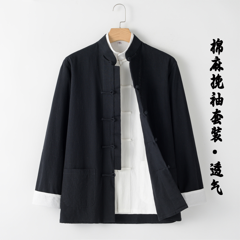 唐装男春秋长袖外套中式盘扣上衣中国风挽袖套装复古男装养生汉服