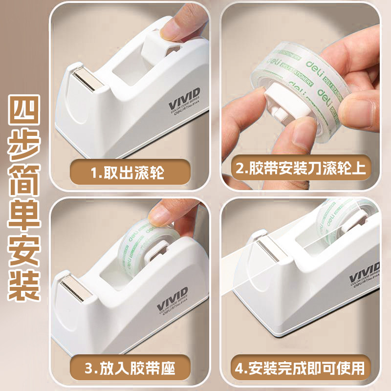 得力胶带切割器透明胶带座底座透明胶布切割机小号手持自动快递打包神器胶纸机纸条撕断器封箱小大号分割器