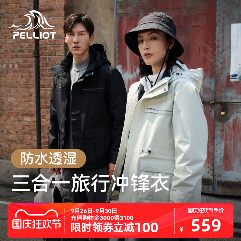 【升级款】伯希和徒步冲锋衣三合一女户外24秋冬防风防雨登山服男