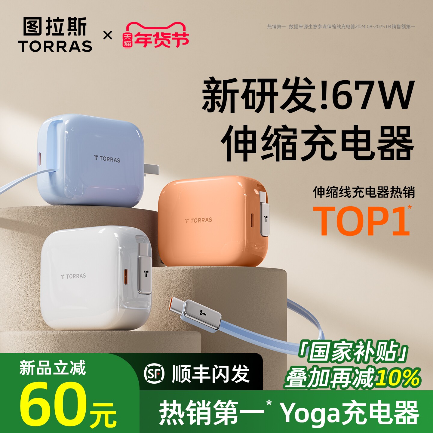 【iPhone17首选】图拉斯Yoga充电器伸缩线67W适用苹果华为iPhone17ProMax自带数据线充电头抽拉式快充电脑45W