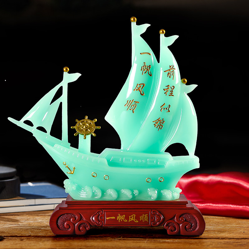 一帆风顺船摆件办公室桌家居装饰品摆设客厅电视酒柜帆船工艺饰品