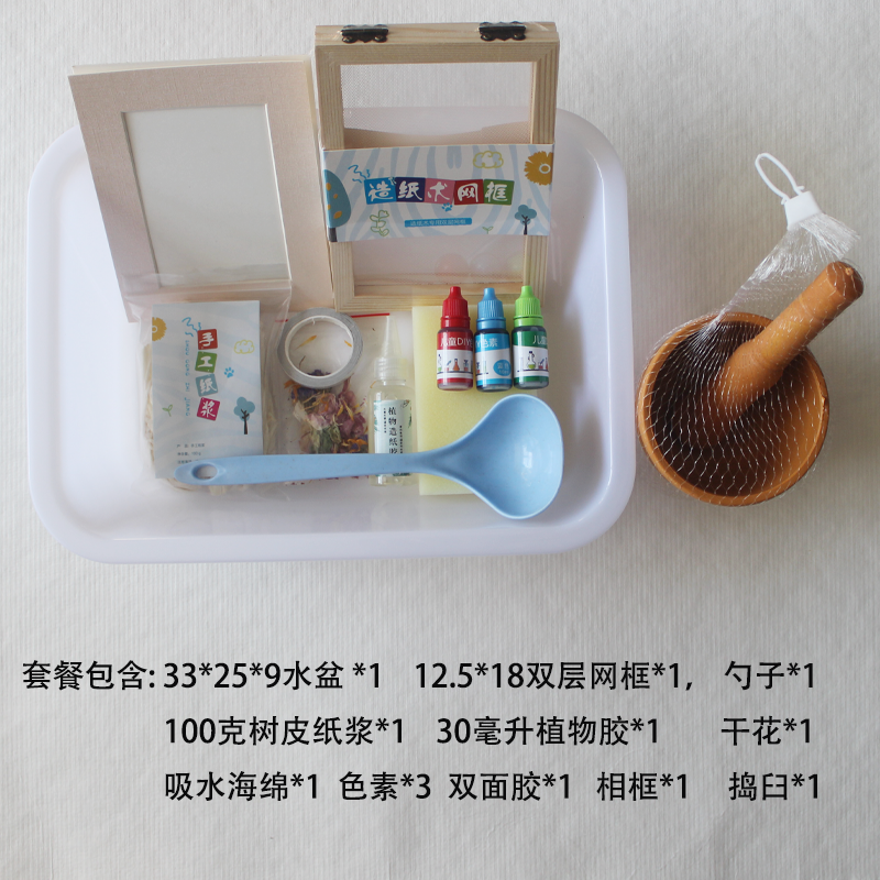 古法造纸术DIY材料套装双层松木网框树皮纸浆儿童手工制作花草纸