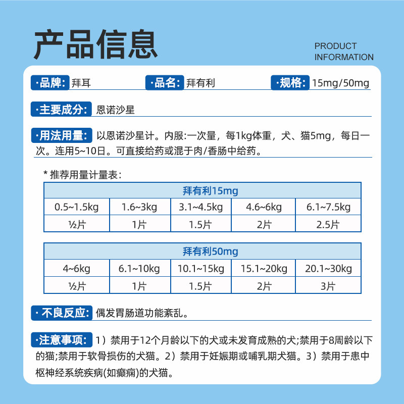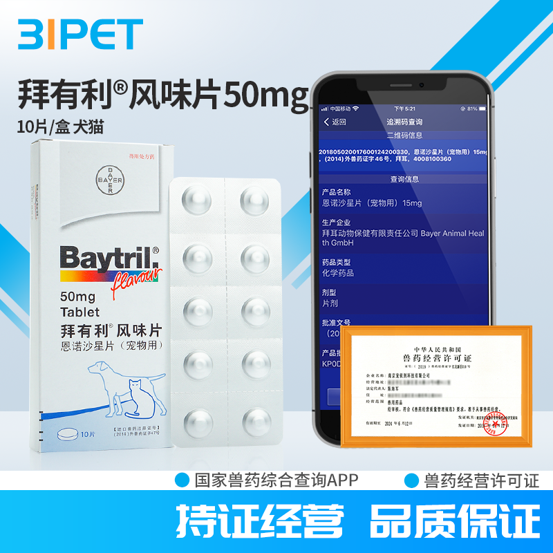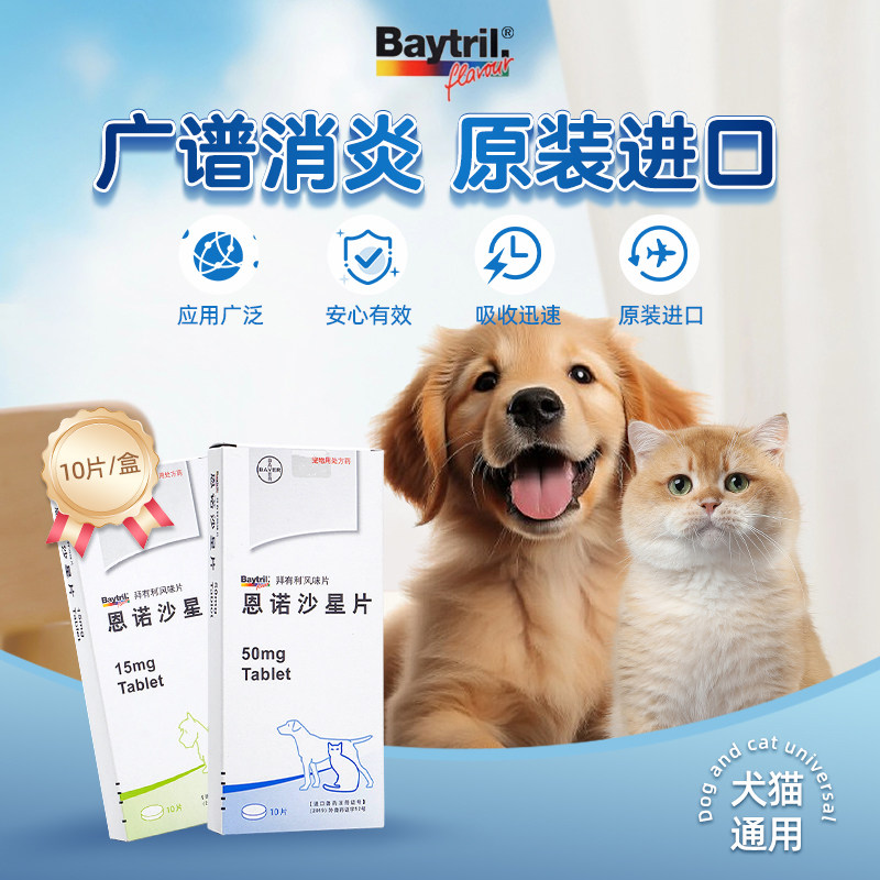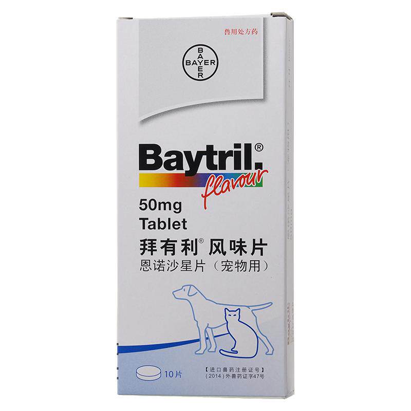 拜有利恩诺沙星风味片狗猫消炎药猫咪尿路感染宠物baytril抗生素