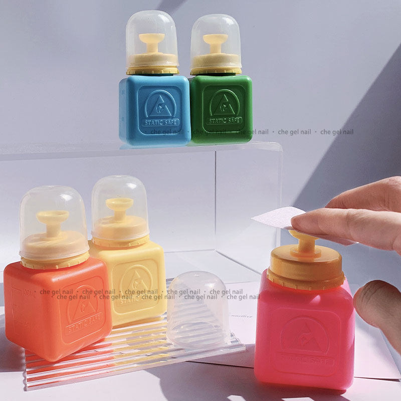 新款日系彩色色彩可爱按压瓶气压瓶清洁水酒精卸甲水美甲工具空瓶