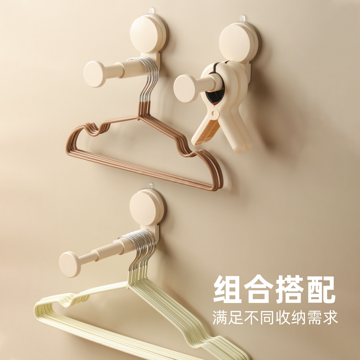 真空吸盘衣架收纳神器阳台可伸缩免打孔家用晾衣架整理挂钩置物架
