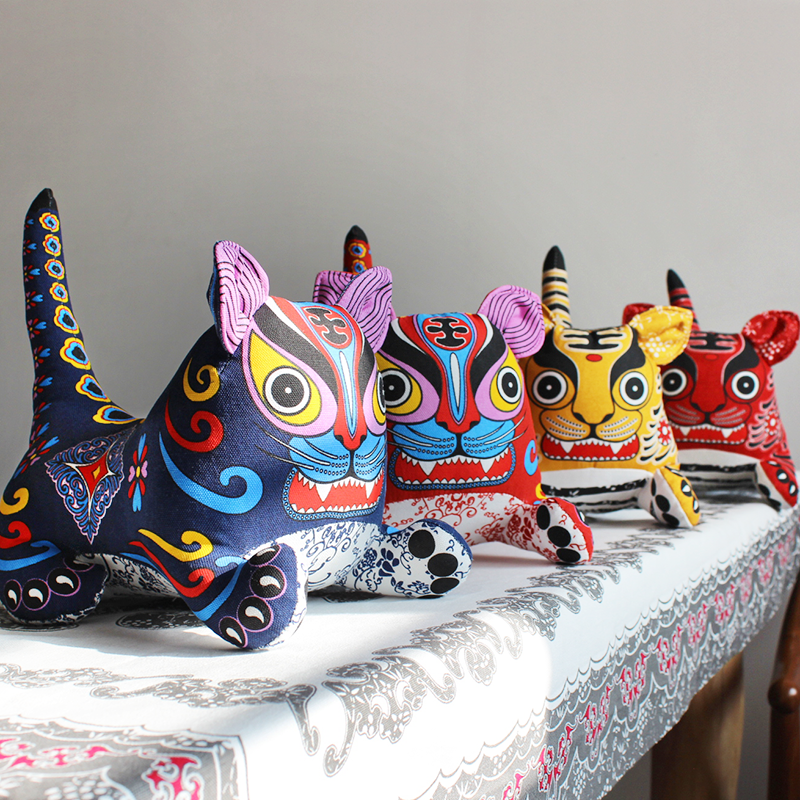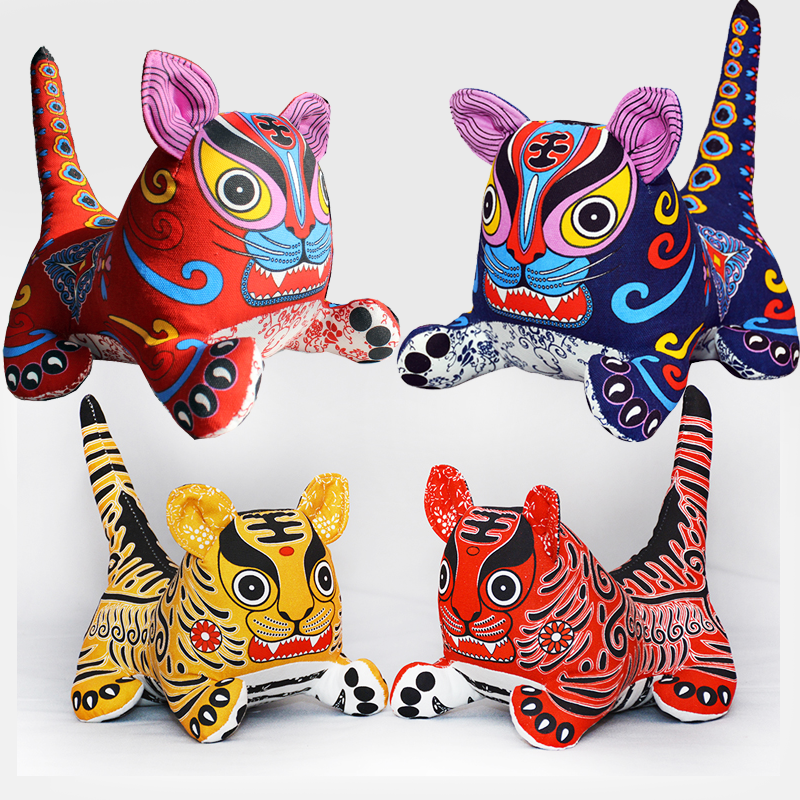 布老虎 传统手工印染民间工艺品中式特色 纯棉布络虎摆件春晚同款