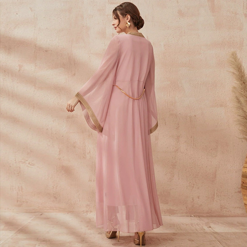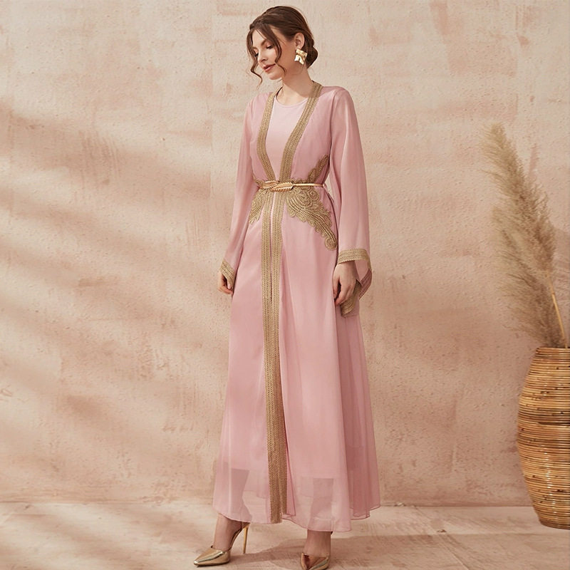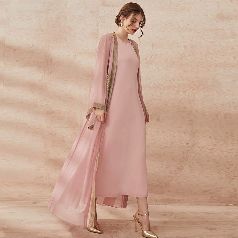 新中东阿联酋时尚女装开衫长裙阿拉伯连衣裙迪拜女士长袍两件套装