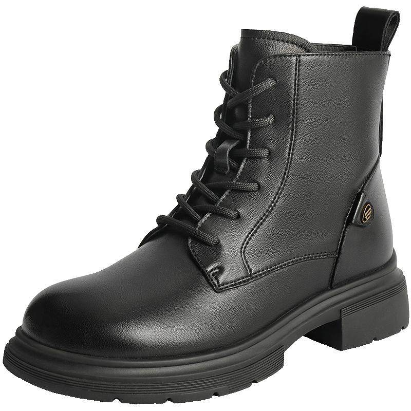 百丽英伦风马丁靴工装靴女鞋子冬新款真皮加绒羊皮短靴B7E2DDD4