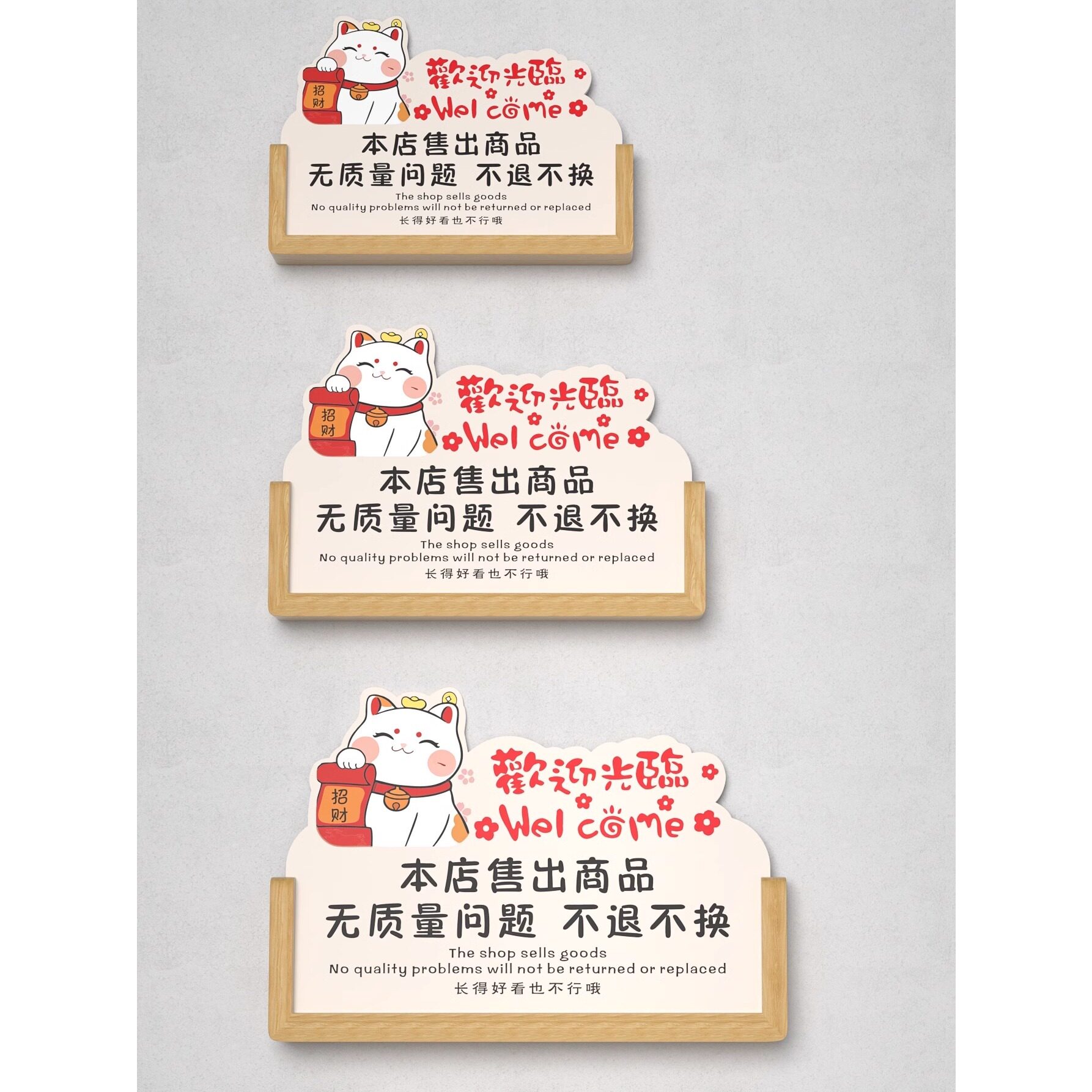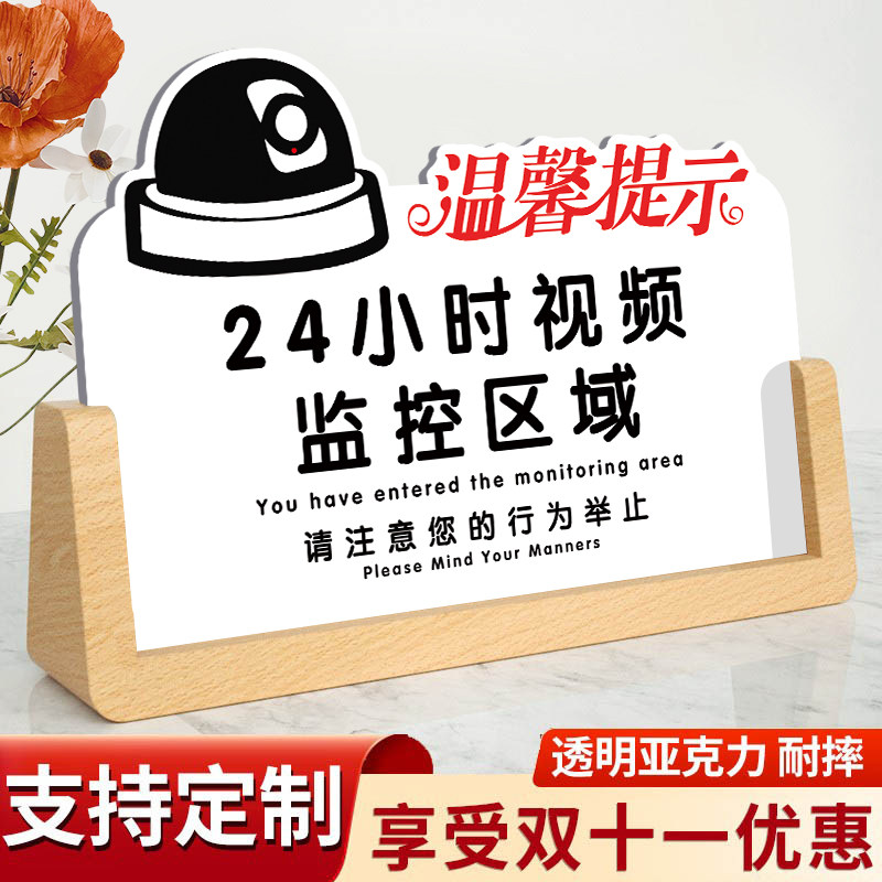 24小时视频监控区域告示桌面立牌温馨提示本店利微薄不赊账木质托摆台