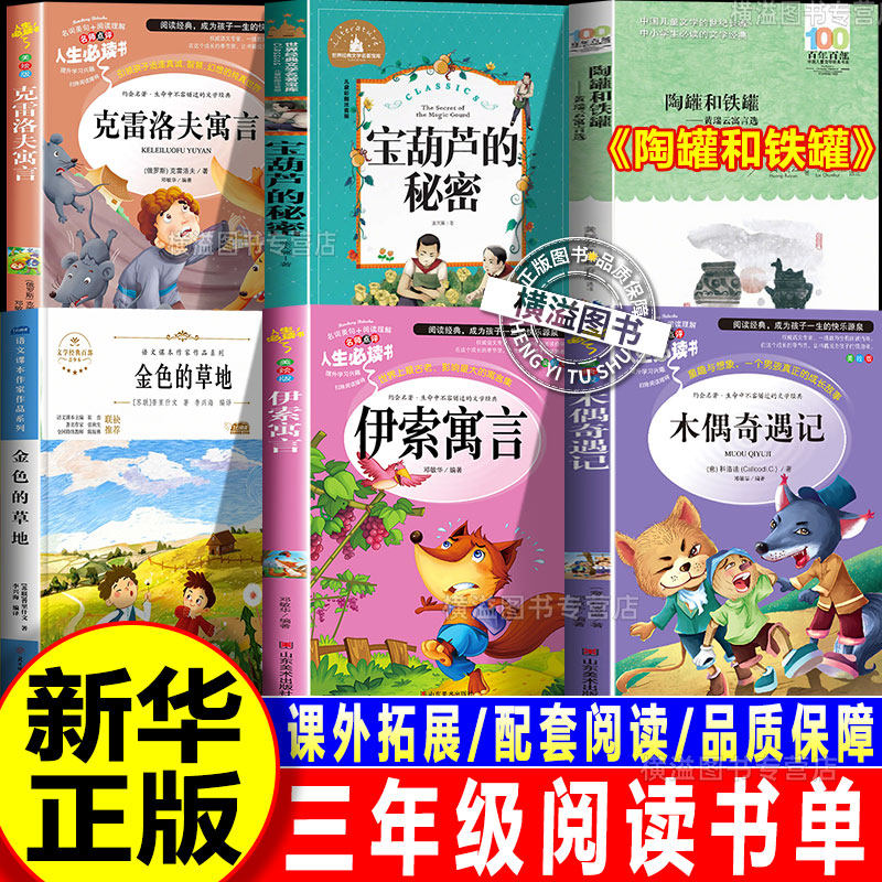 2026春季三年级下册校校必读的课外书 伊索寓言+克雷洛夫寓言+木偶奇遇记+金色的草地+宝葫芦的秘密+陶罐和铁罐