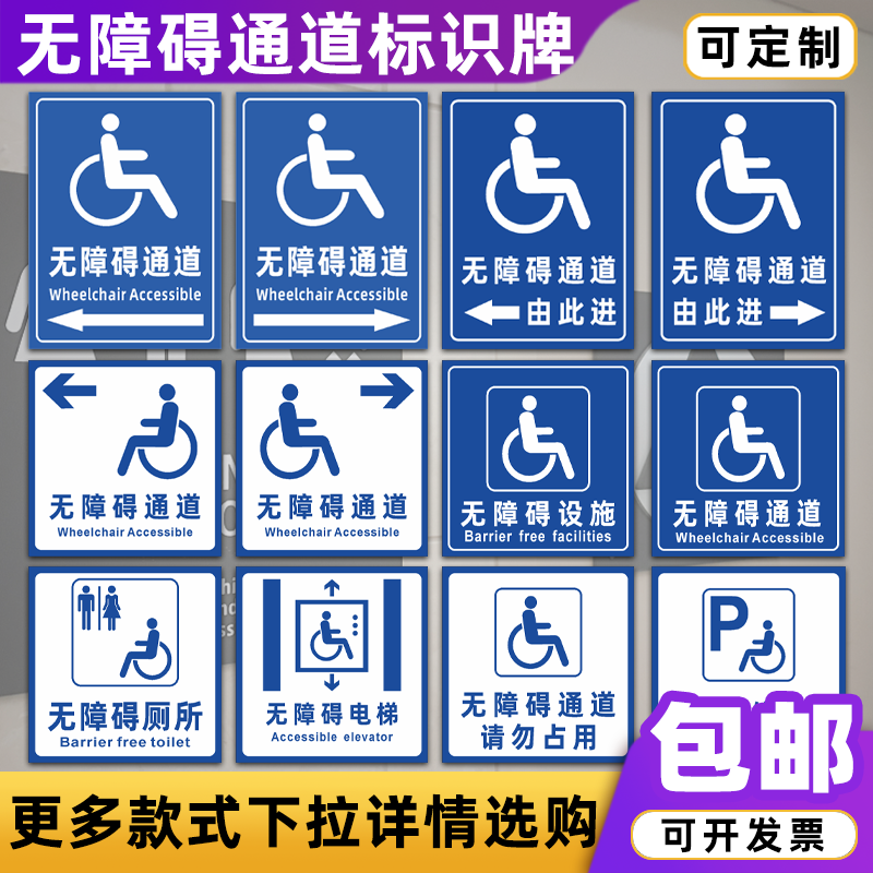 无障碍通道标识牌残疾人专用厕所电梯设施坡道请勿占用提示牌定制