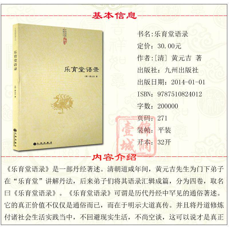 乐育堂语录 道教典籍丛刊/黄元吉语录 黄元吉著作 九州出版社