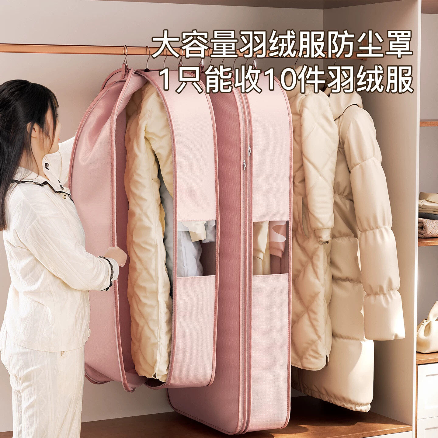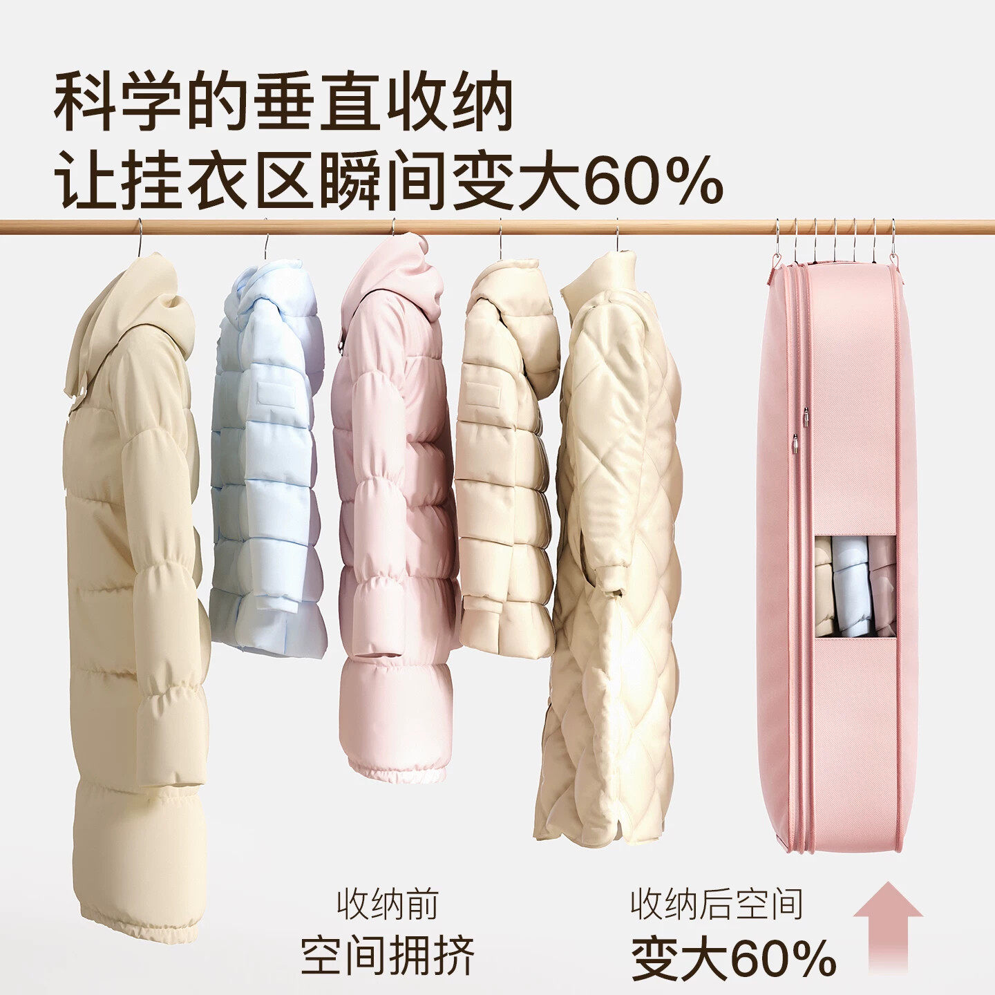 羽绒服专用收纳袋挂式免抽气大衣西服防尘罩衣柜压缩衣服整理神器