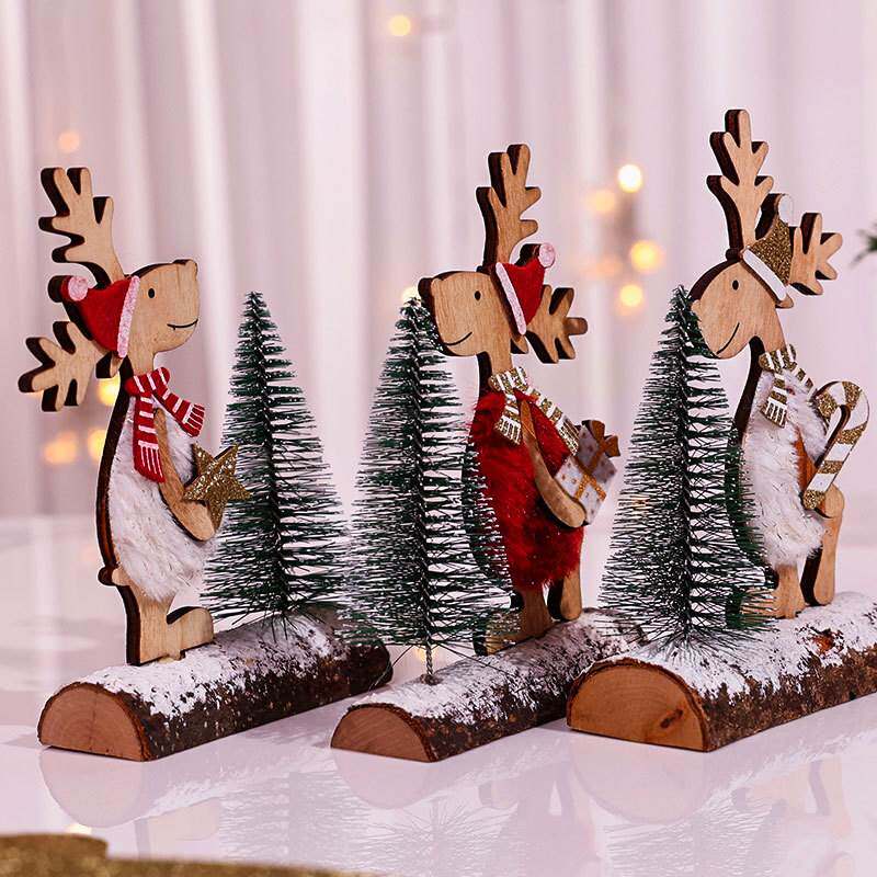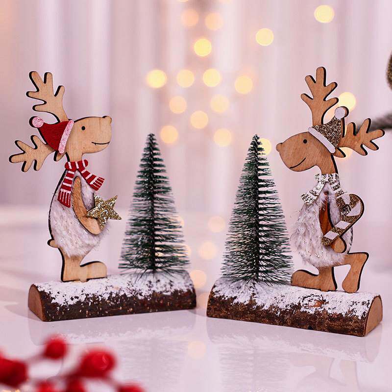 A wooden Christmas cedar tree presents a small gift圣诞节