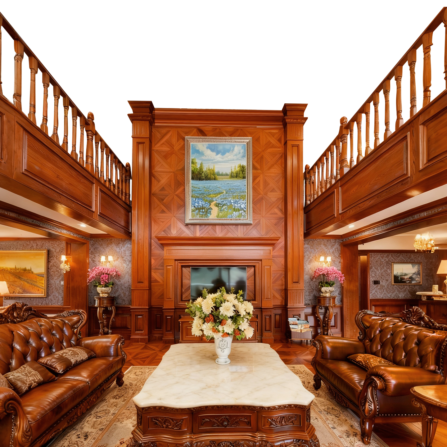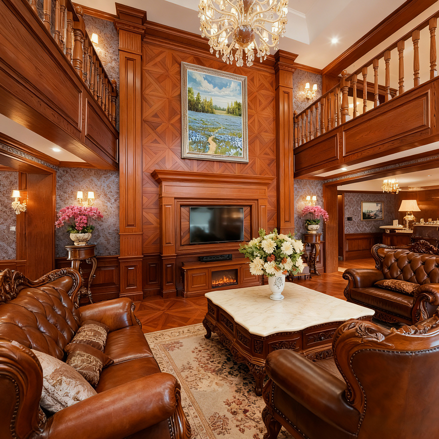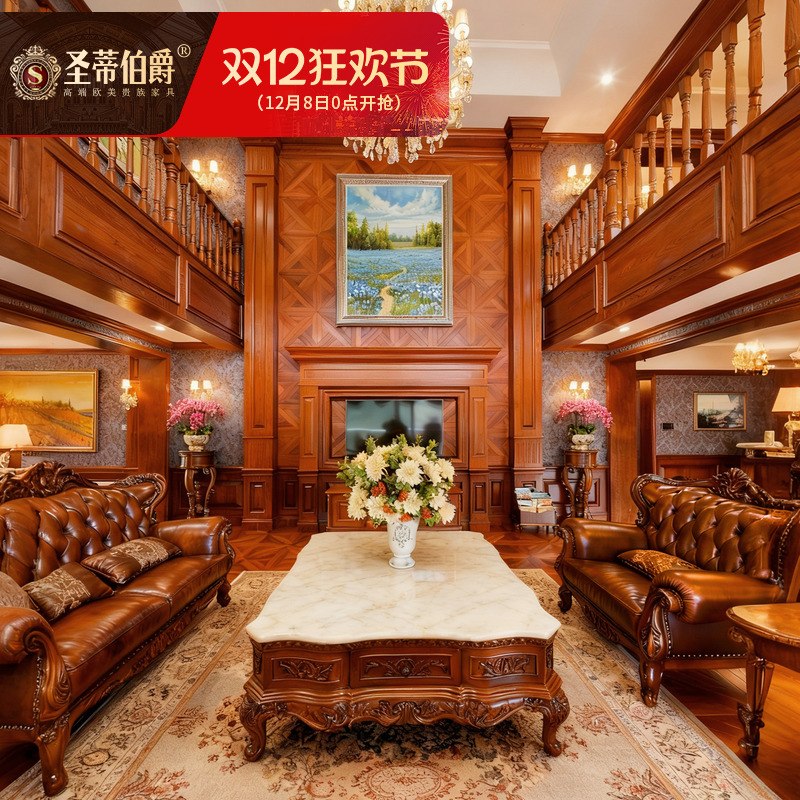 圣蒂伯爵美式别墅全屋定制客厅背景墙实木护墙板欧式吊顶中式墙裙