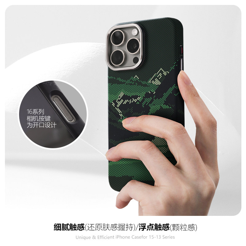 雪朗格山河系列适用苹果17promax手机壳凯夫拉纹iphone 16pro肤感手机套15pro磁吸无限充电magsafePC水贴硬壳