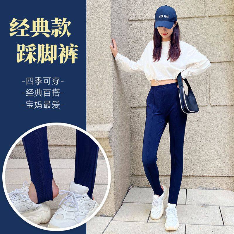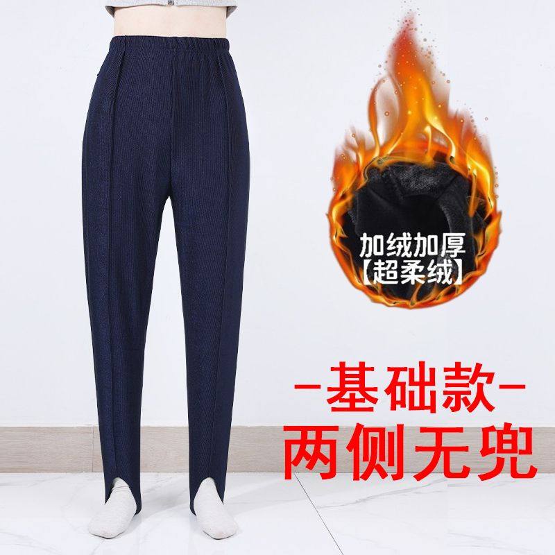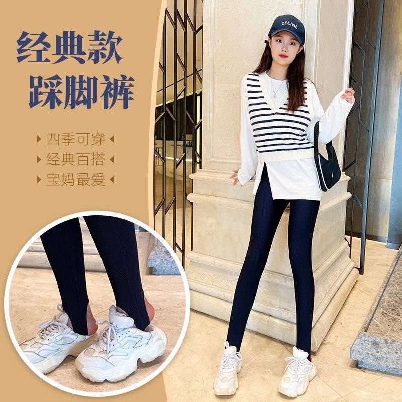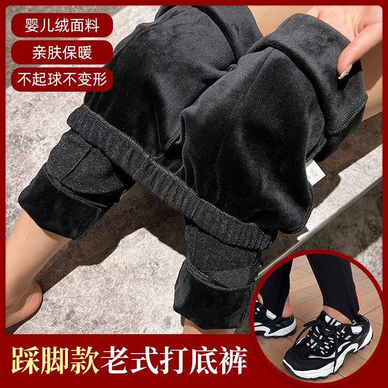 新款精品女士打底裤加厚加绒宽松外穿细条纹高腰踩脚健美裤