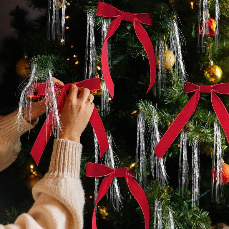 新品天鹅绒丝带圣诞树装扮蝴蝶结装饰节日配饰场景展示挂饰品