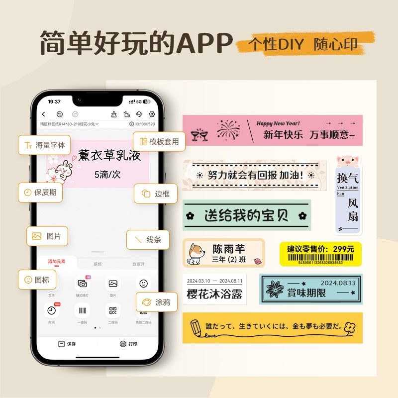 精臣H1/H1S智能连续纸标签打印机家用小型透明便签姓名贴臣小印