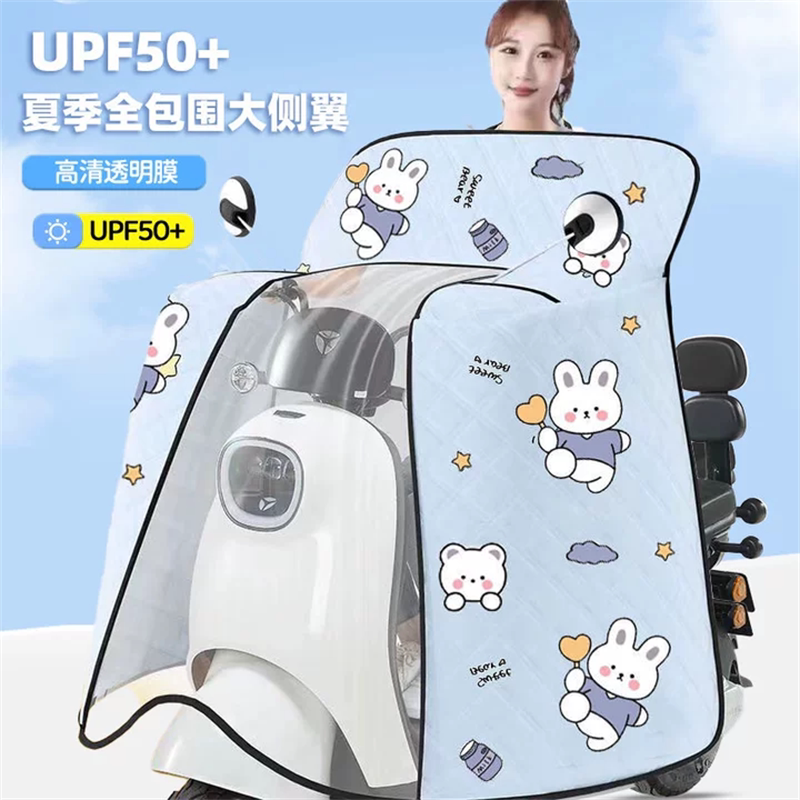 UPF50+电动车挡风被夏季全包围卡通防晒防风罩透明膜