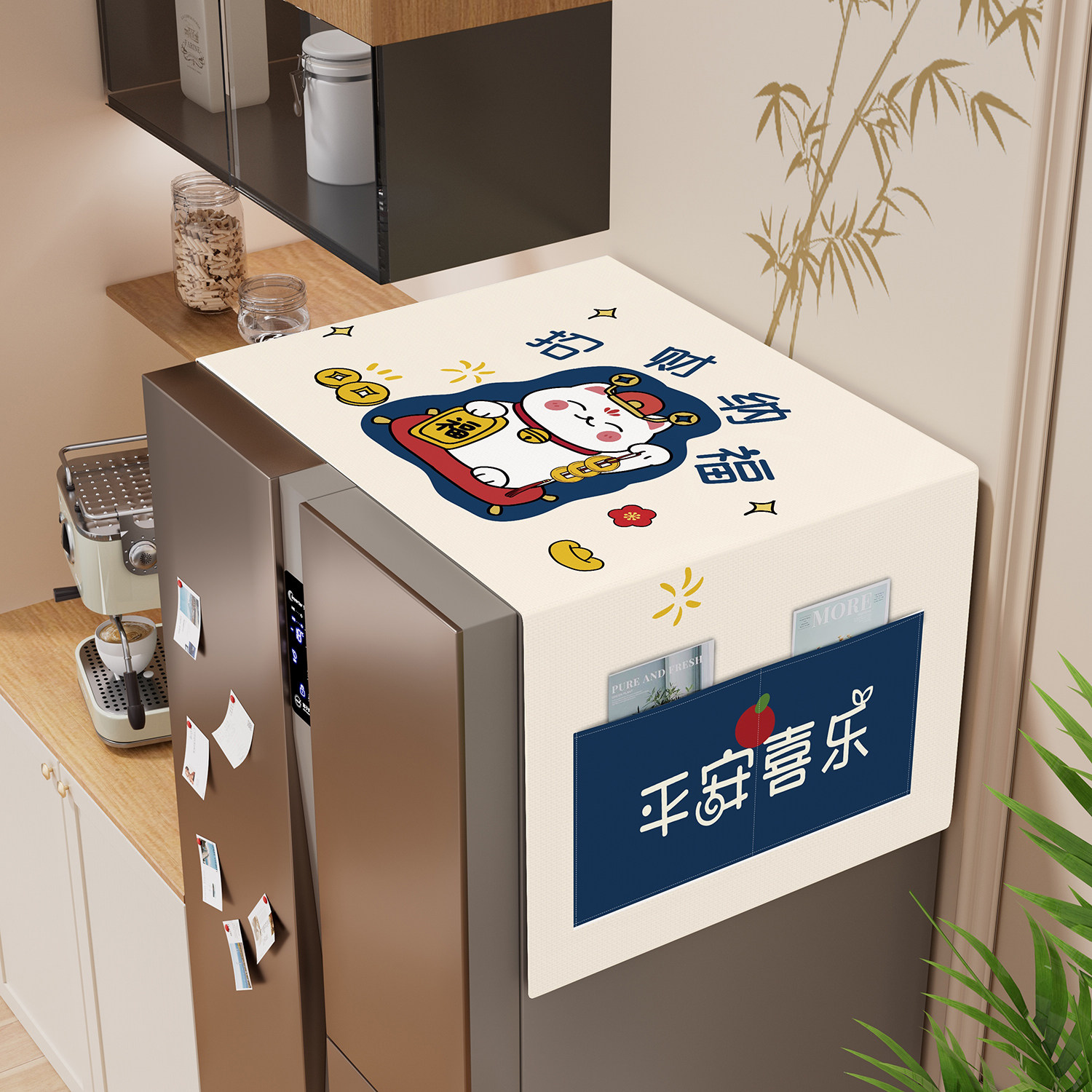 新款家用冰箱盖巾卡通布艺盖巾厨房微波炉防尘罩带收纳洗衣机盖布