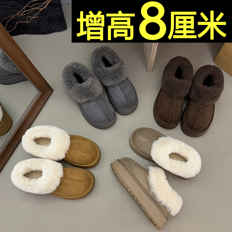 厚底雪地靴女款冬季2025新款加绒加厚内增高毛毛棉鞋保暖面包短靴