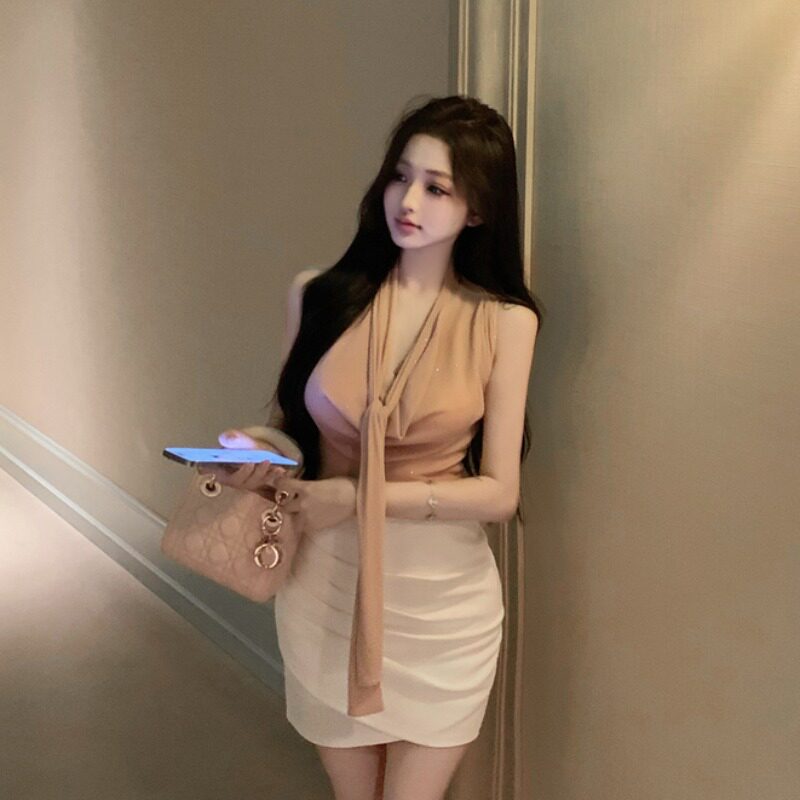 金秘书御姐气质细闪两件套装2024夏季新款无袖网纱系带上衣包臀裙
