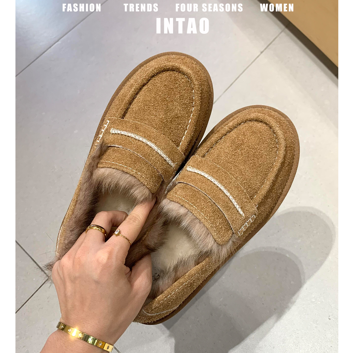 牛皮版~复古加绒厚底乐福鞋女2025冬季新款超火毛毛鞋豆豆棉单鞋