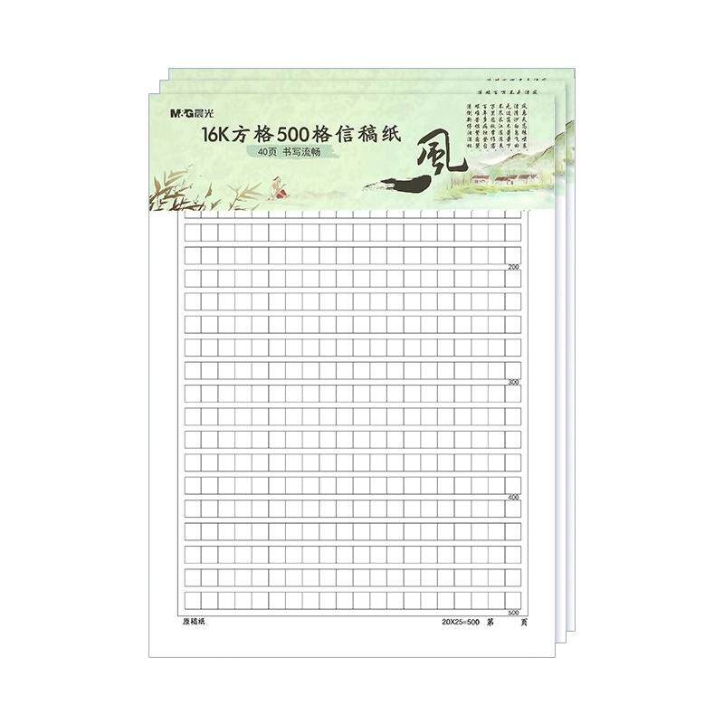 晨光16k作文纸小学生专用400格/300/500方格信稿纸英语横线拍纸本可撕加厚原稿纸信笺信签纸数学作业草稿纸本