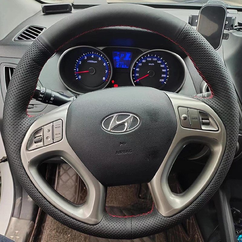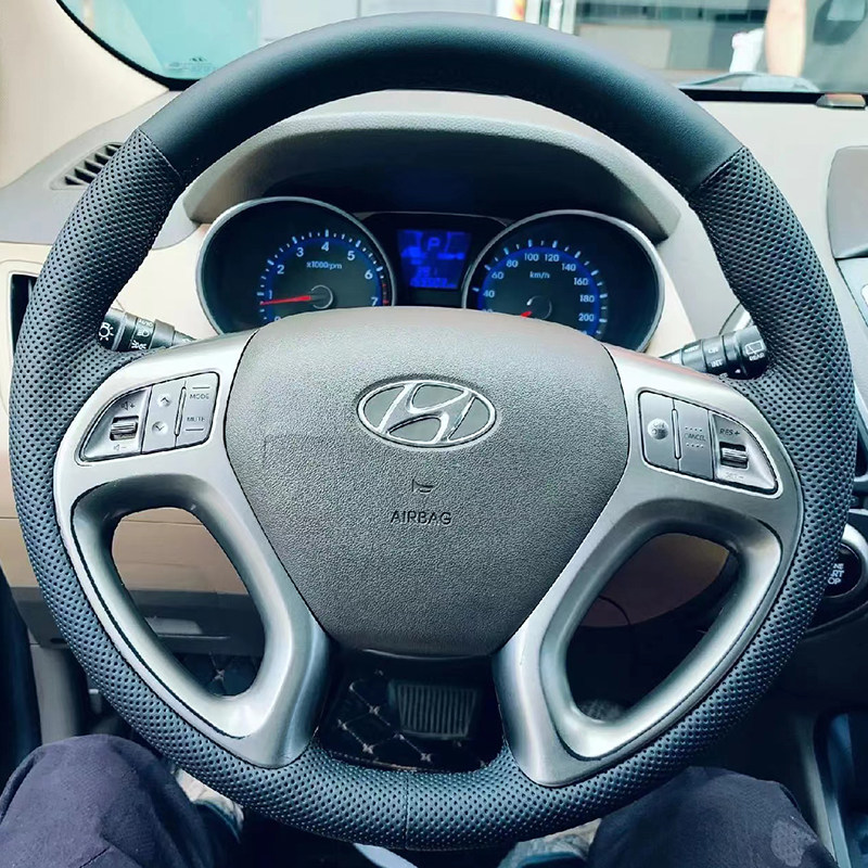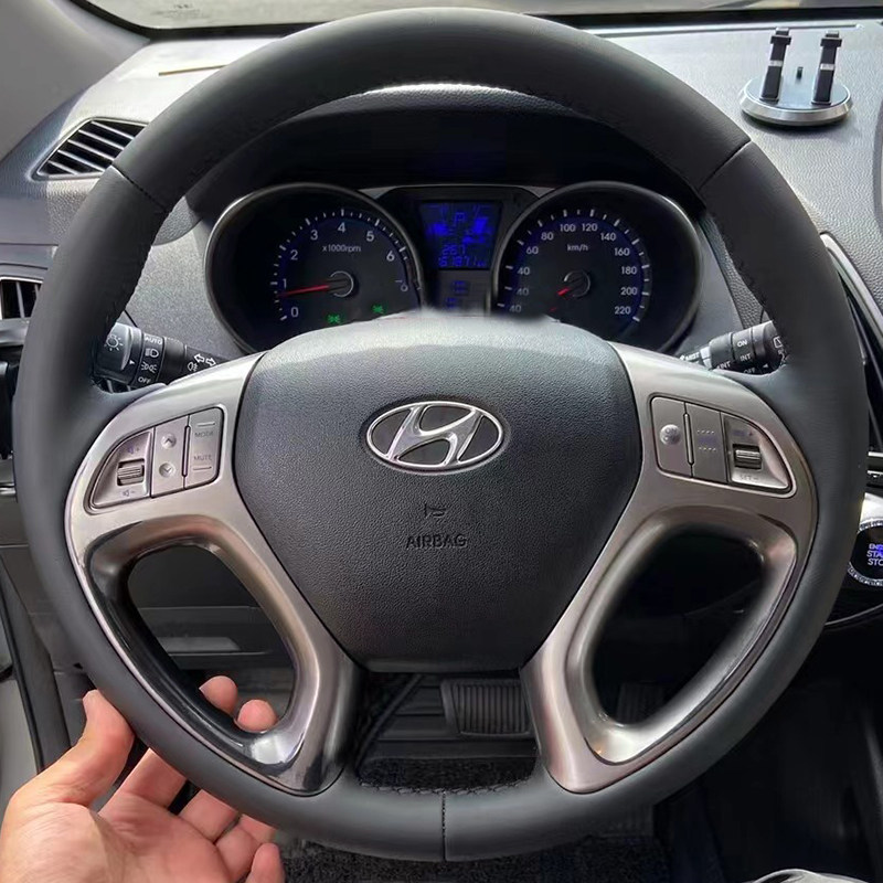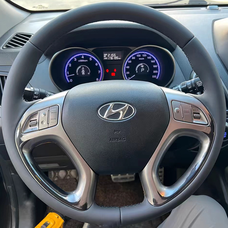 现代方向盘套真皮10-11-12-13-15款现代ix35把套专用手缝全包款