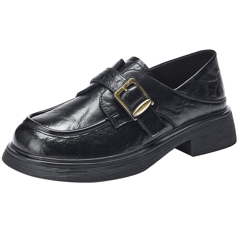 热风黑色小皮鞋女款2026年春季新款复古英伦风乐福鞋通勤女鞋两穿