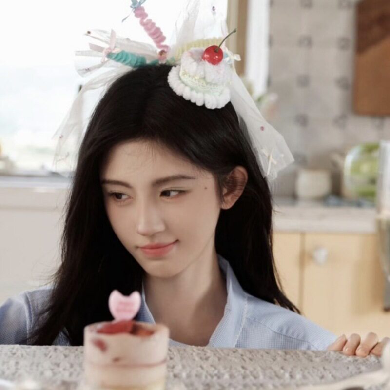 鞠婧祎同款生日发箍头箍派对聚会装饰蛋糕头发饰头纱可爱道具