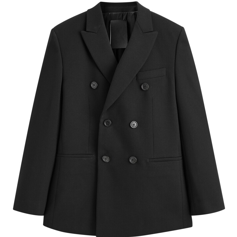 【断码钜惠】大师系列太平鸟男装黑色羊毛西服双排扣斯文西装男