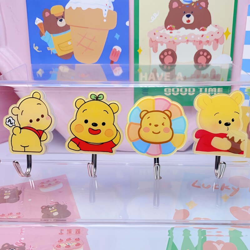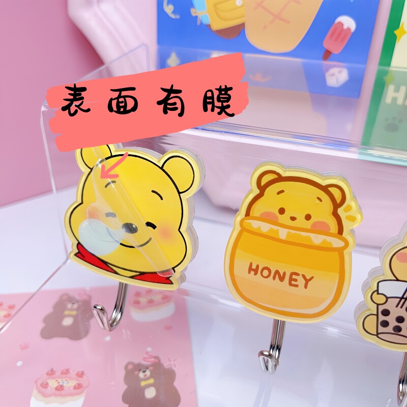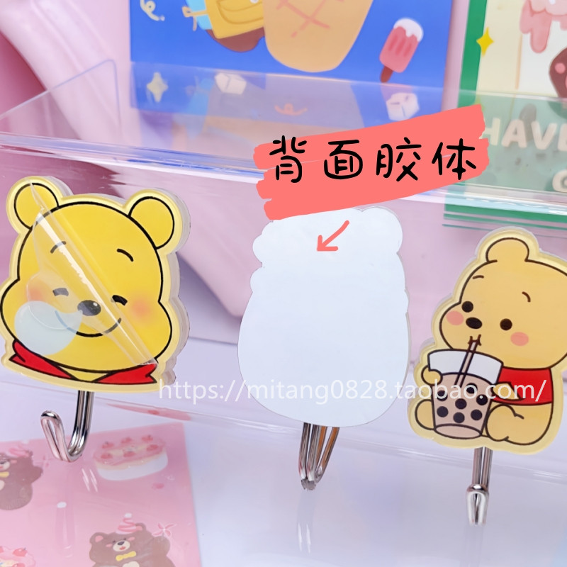 可爱卡通维尼熊门后挂钩创意黄油小熊家用分类免打孔收纳整理粘钩