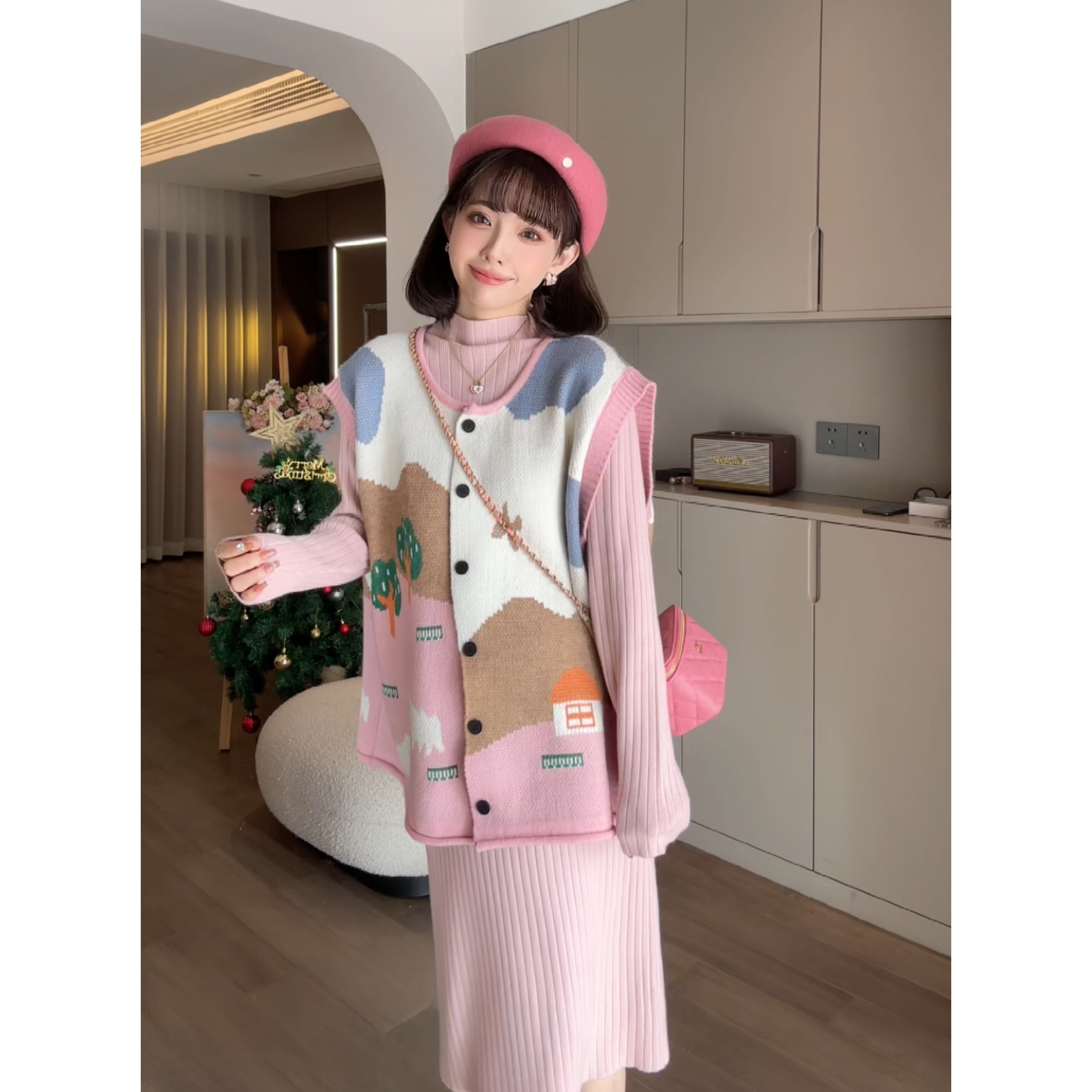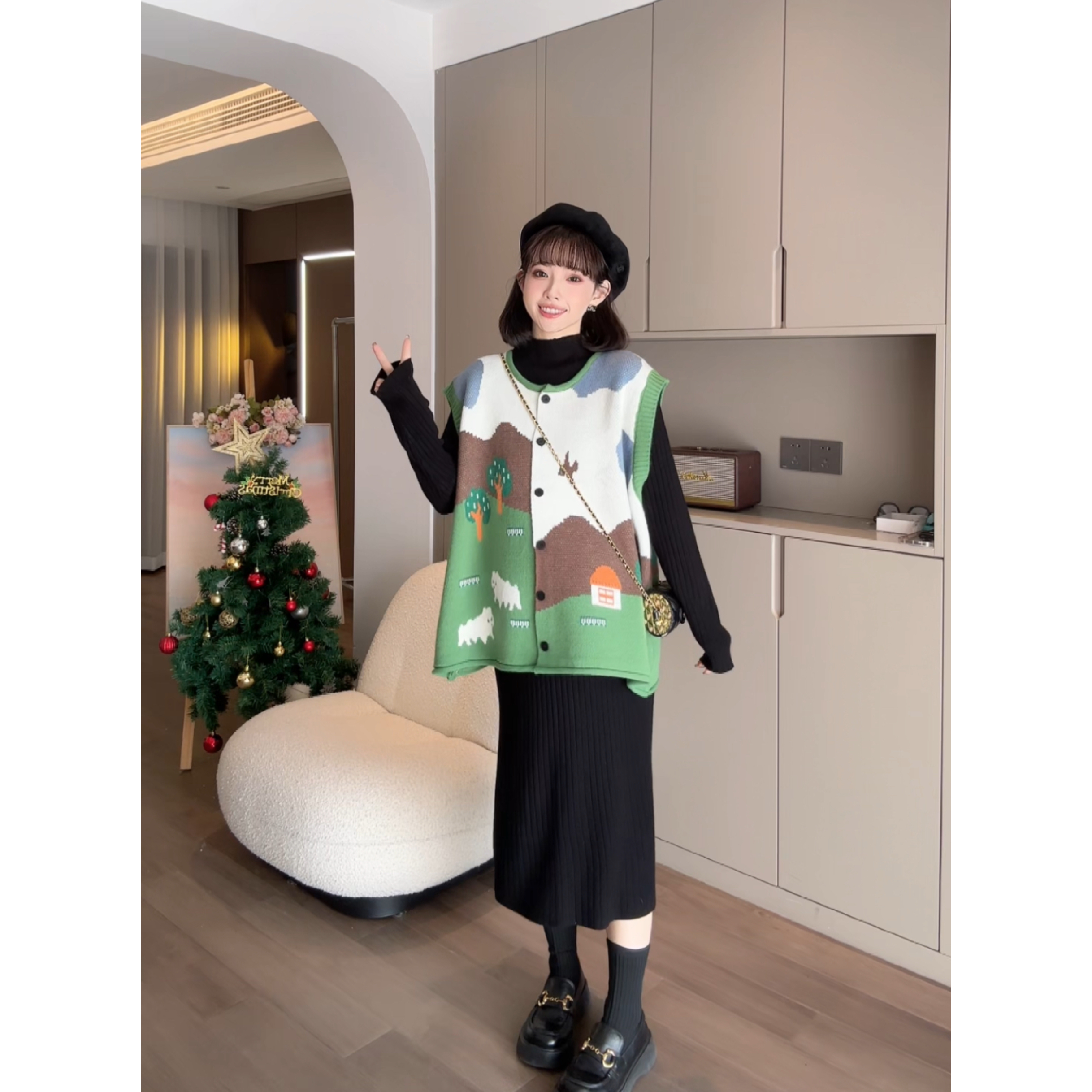 猫单【乔鲁漫画】娜娜的孕期穿搭孕妇装春秋款针织马甲连衣裙套装