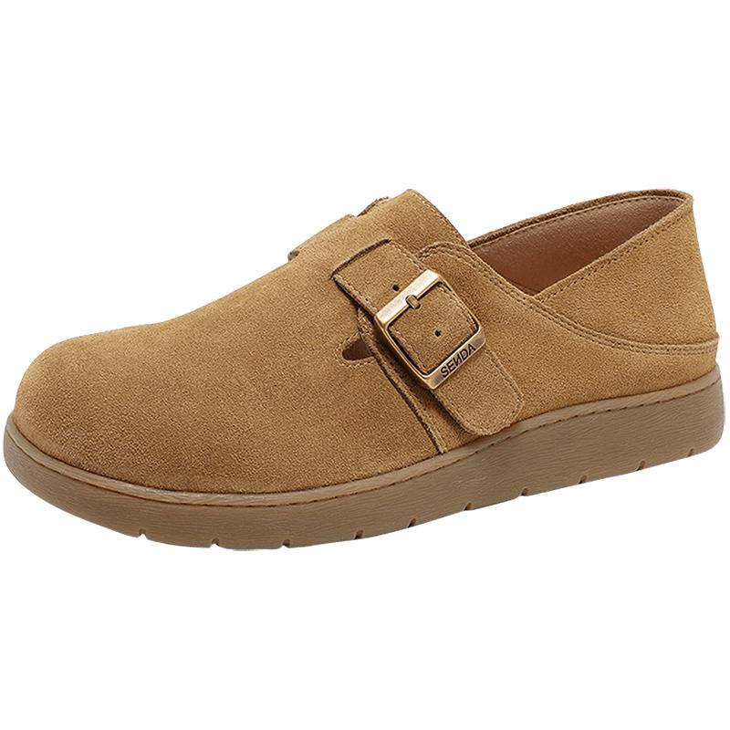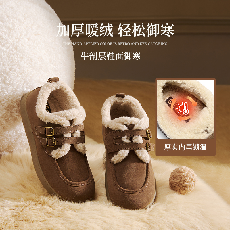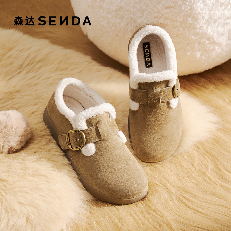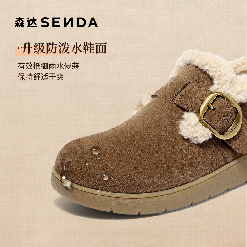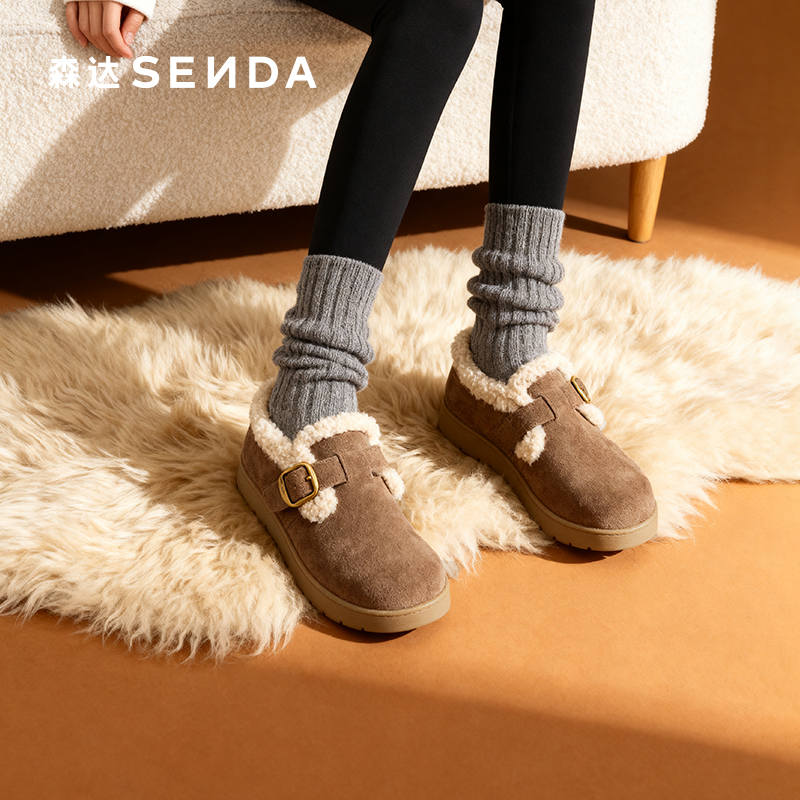 森达毛毛鞋冬季女鞋新款加绒棉鞋雪地靴加厚毛绒牛皮保暖鞋勃肯鞋