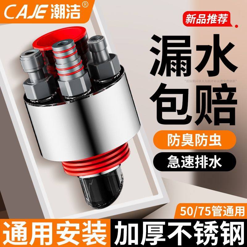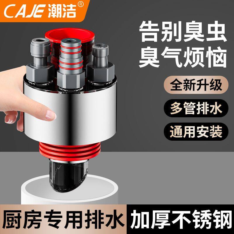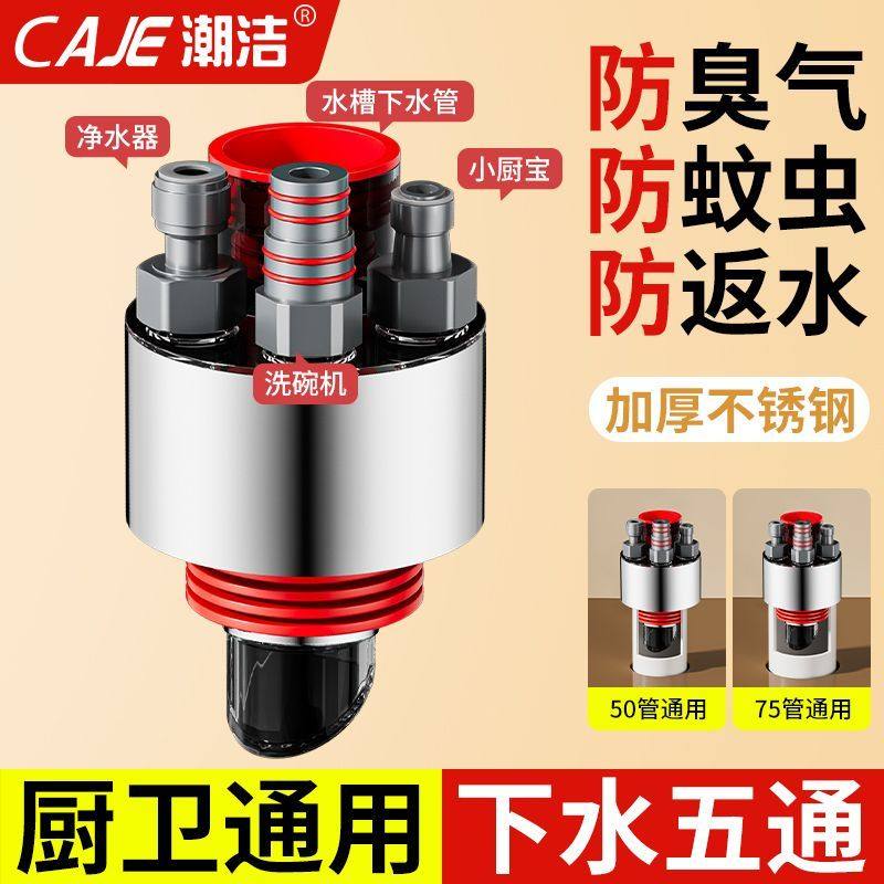 潮洁厨房下水管三头通防返臭神器水槽四通排水下水道洗菜盆密封塞