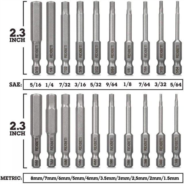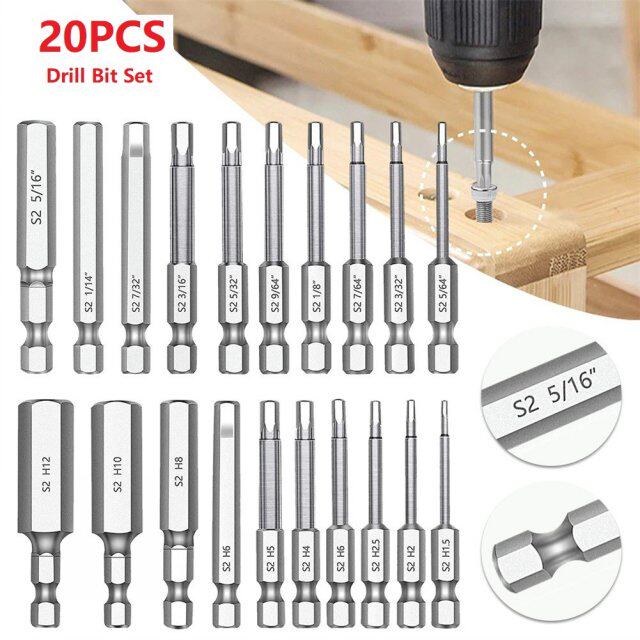 20Pcs 1/4 Hex Head Allen Wrench Drill Bit Set SAE/Metric Ma