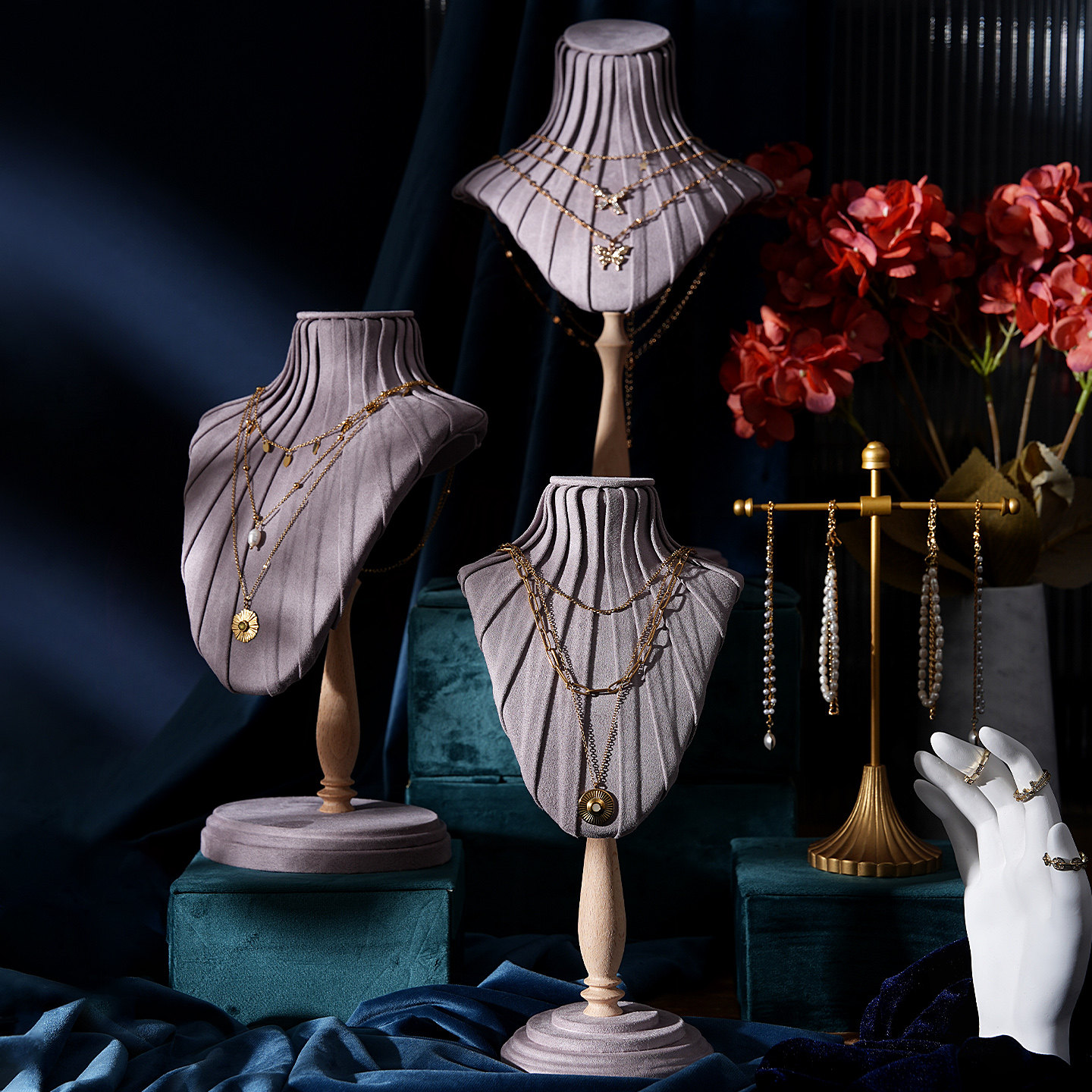首饰展示架绒布半身胸膜项链收纳架饰品店铺柜台橱窗陈列拍摄道具
