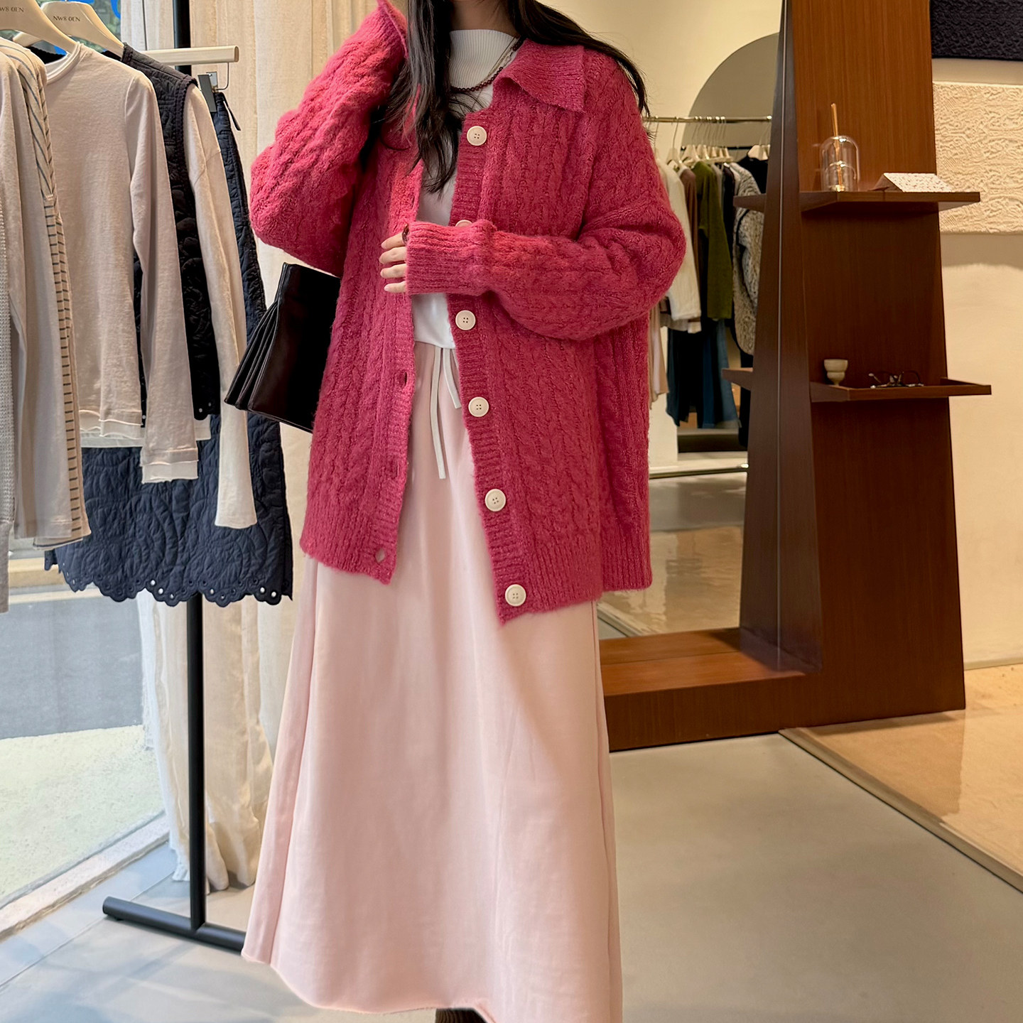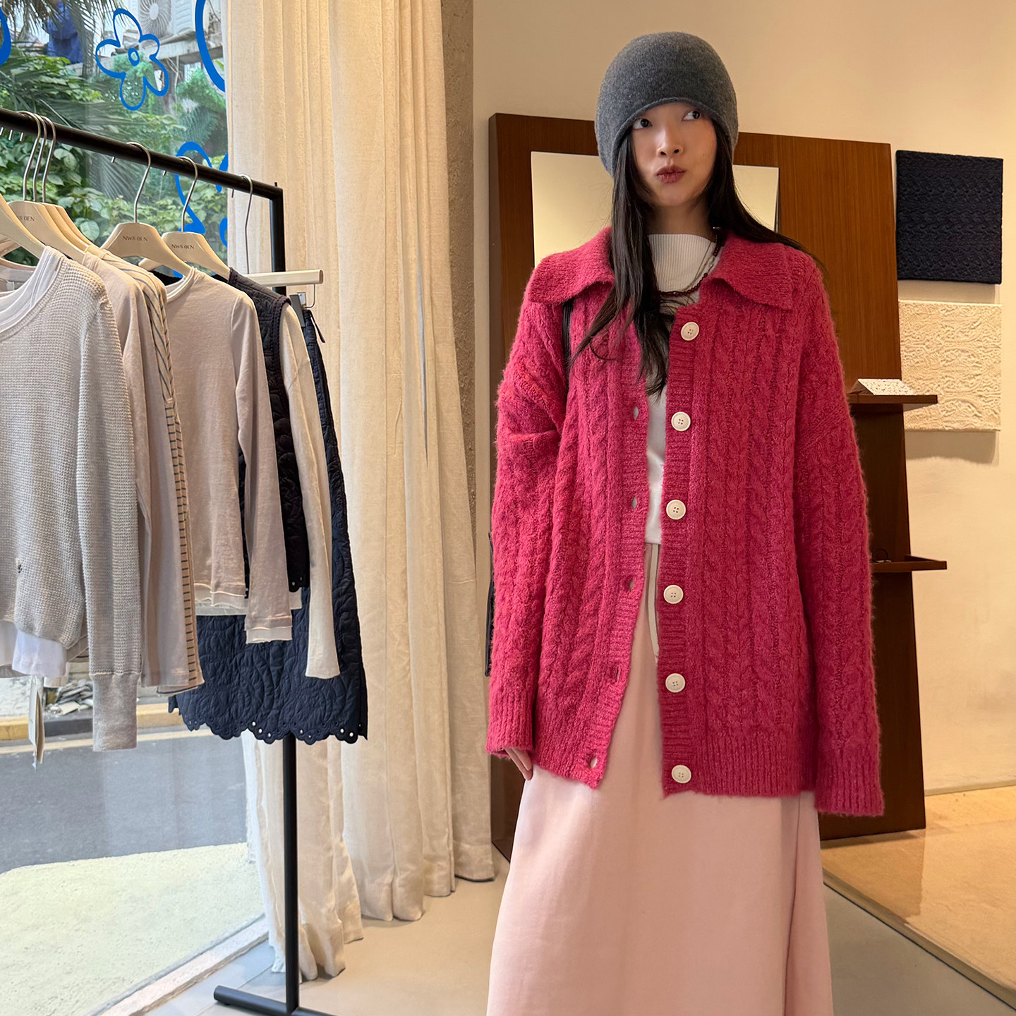 NW8 0EN《cozy winter》翻领羊驼毛绞花毛衫复古气质高级感毛衣女