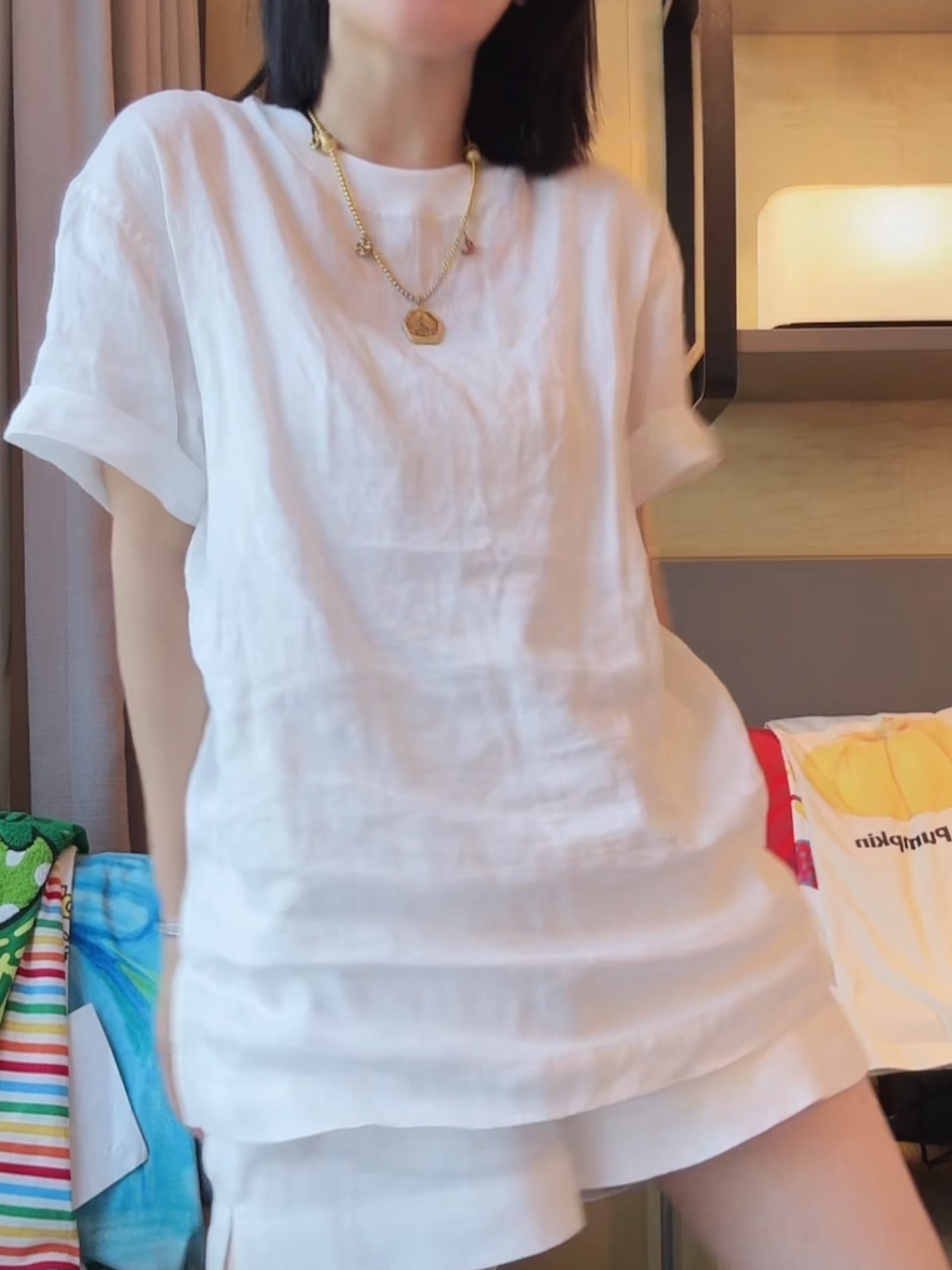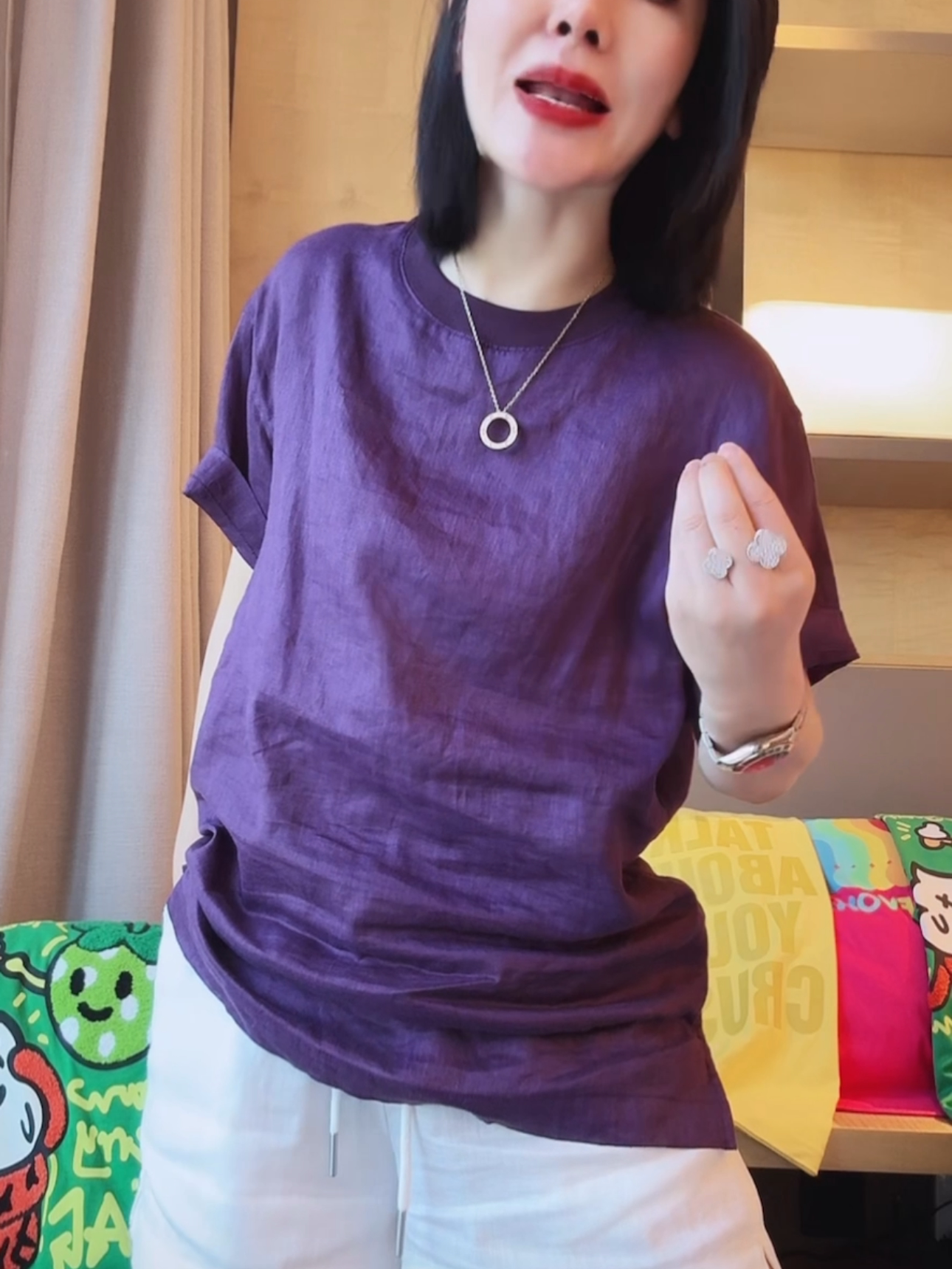 潮牌亚麻纯色短袖T恤女2026夏季新款韩版简约宽松百搭显瘦上衣ins