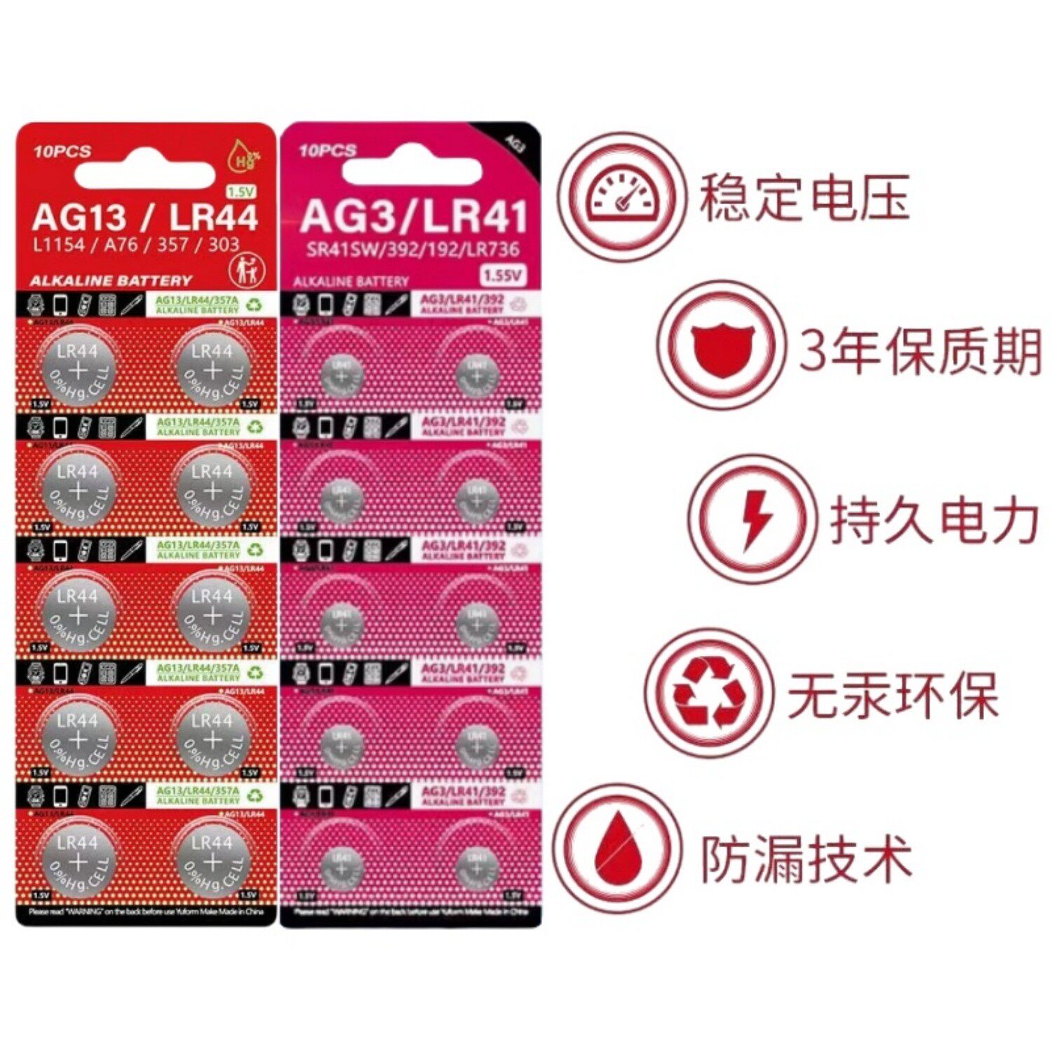 LR44/LR41纽扣电池AG13/AG3手表计算机玩具遥控器1.5V碱性小电池
