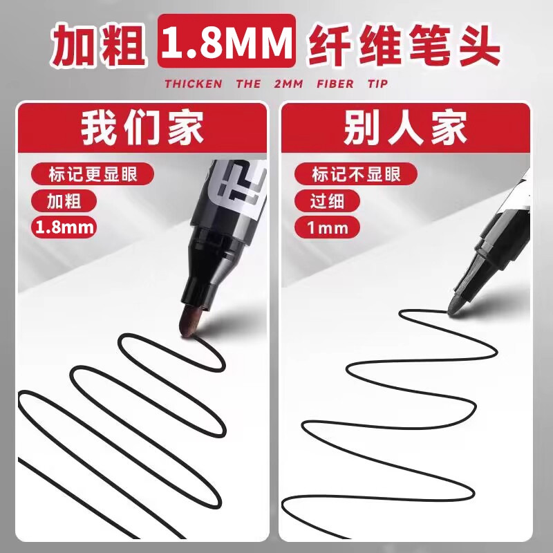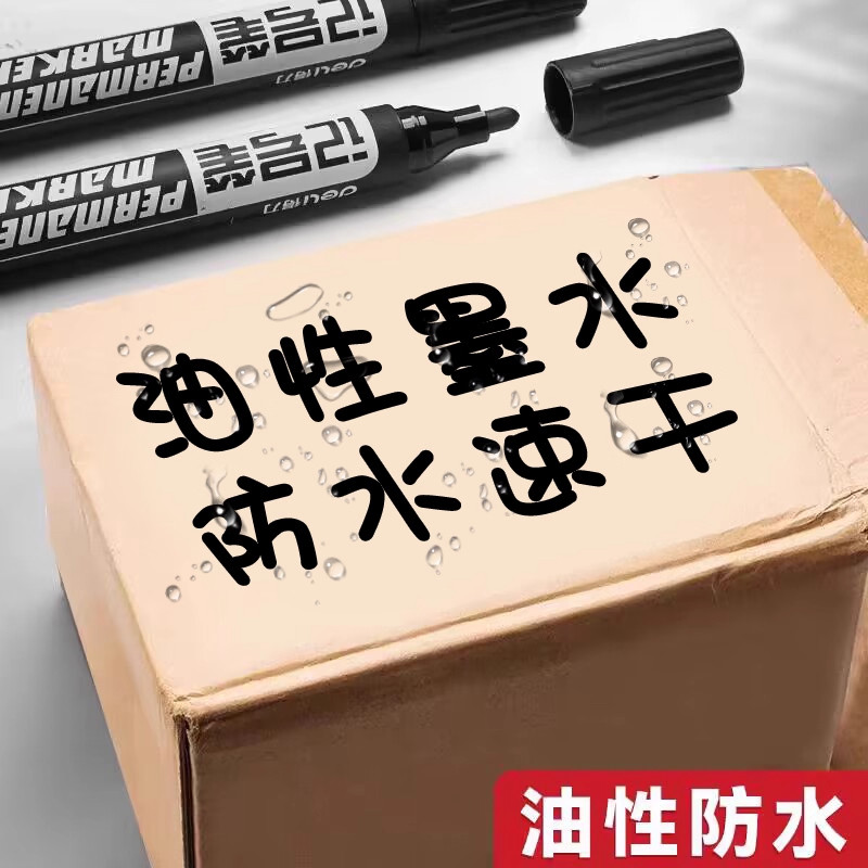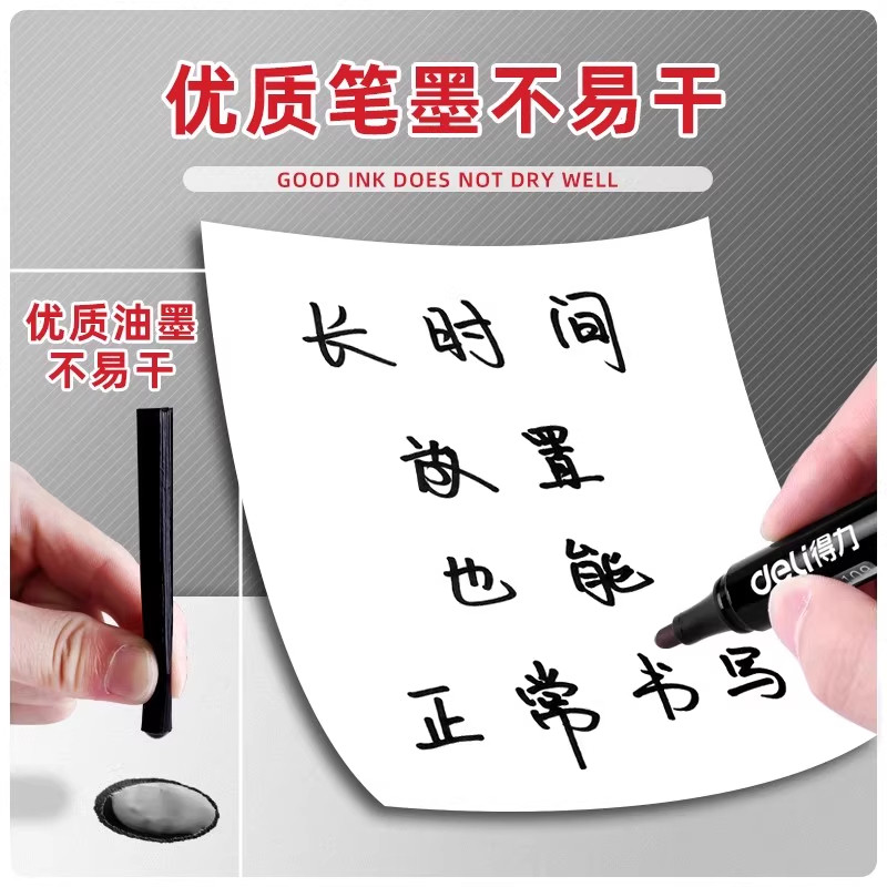 得力记号笔黑色防水防油不掉色油性大头笔签字笔工地马克笔勾线笔美术专用小学生红色蓝色快递儿童水笔墨水粗