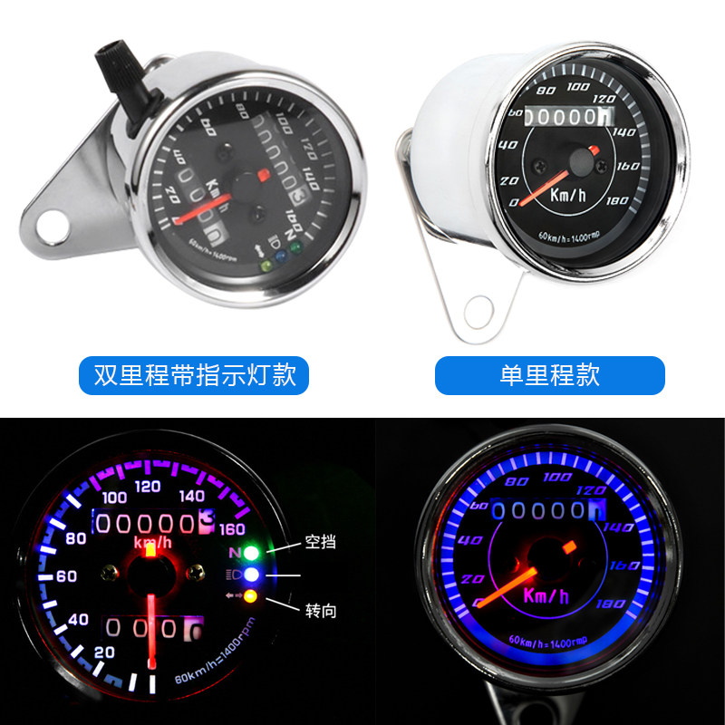 摩托车复古改装仪表总成12V小猴子里程表时速仪表盘机械转速表